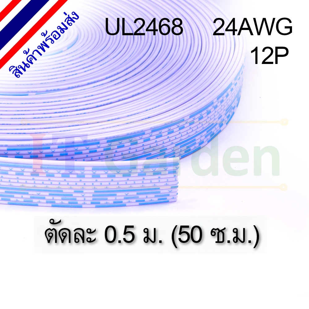 สายแพ ขาวฟ้า 12 pin 24AWG UL2468 สำหรับ Dupont, XH2.54, PH2.0 (0.5 ม.)