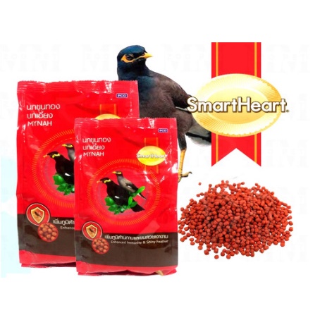 อาหารนกเอี้ยง นกขุนทอง 400 กรัม สูตรเพิ่มภูมิต้านทานและขนสวยเงางาม Smartheart