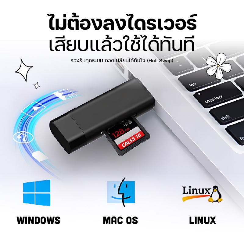 3 ใน 1 เครื่องอ่านการ์ด อะแดปเตอร์ USB Type-C สำหรับกล้องคอมพิวเตอร์ ความเร็วสูง การ์ด TF/SD OTG เครื่องอ่านการ์ด