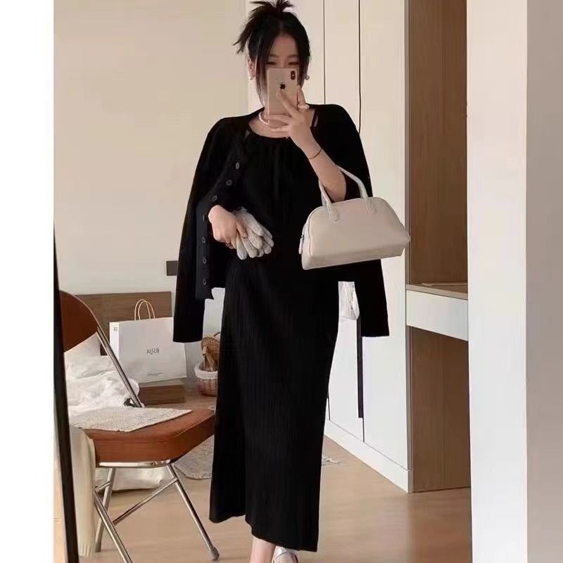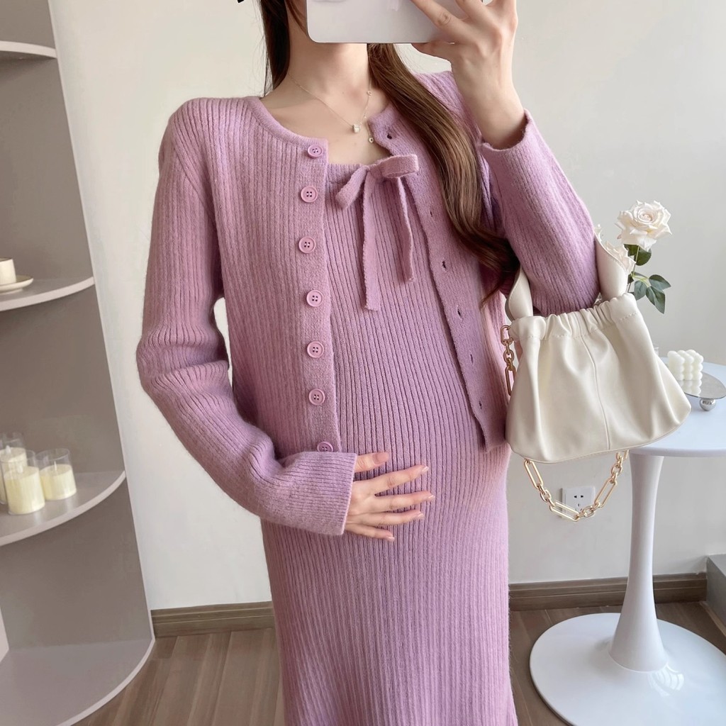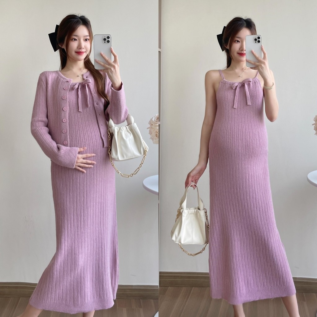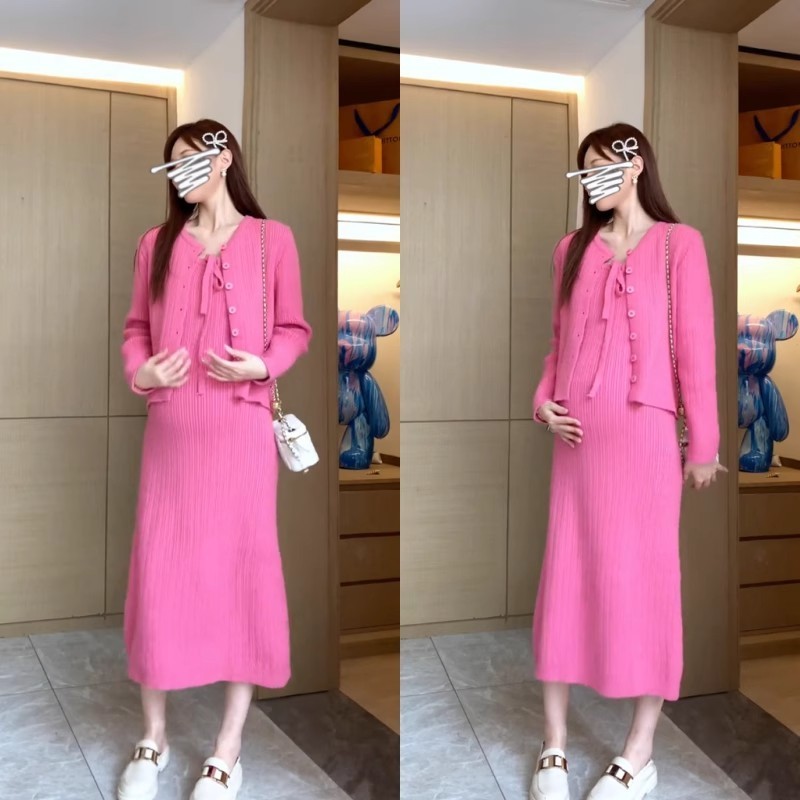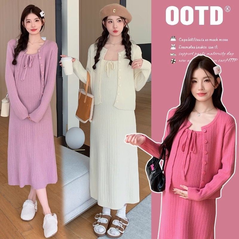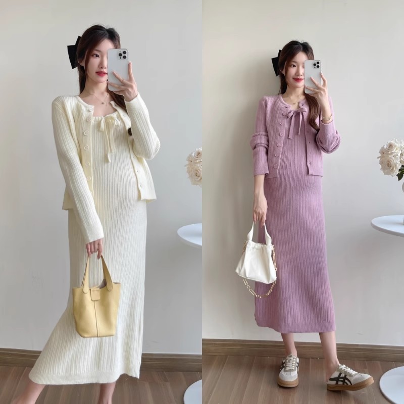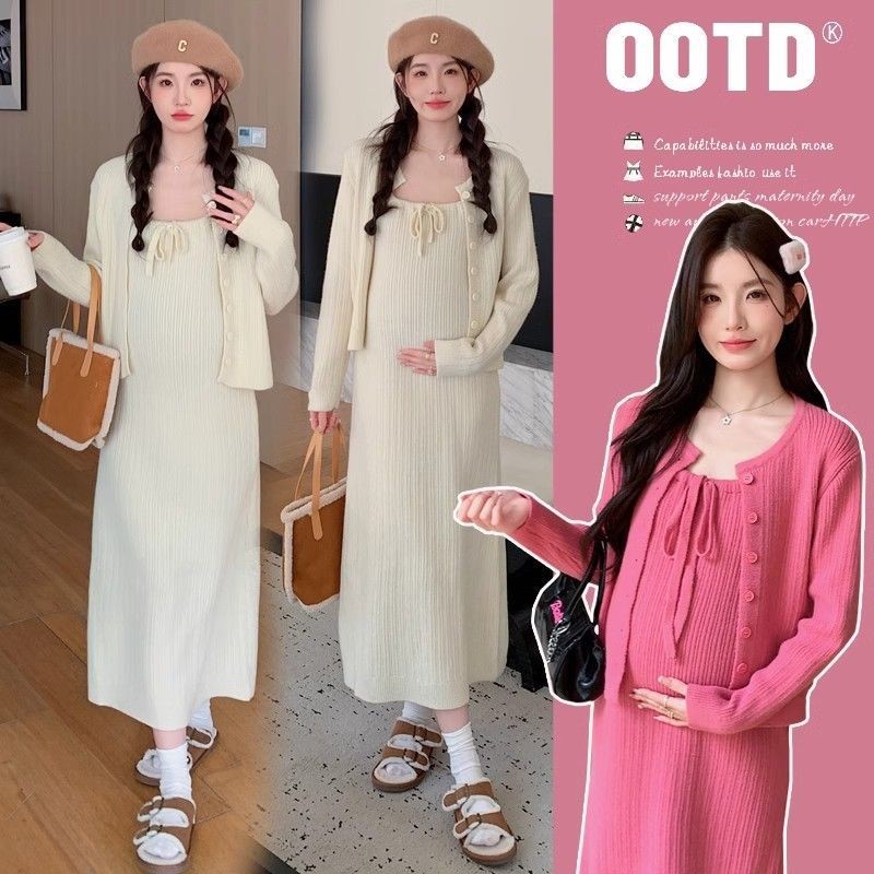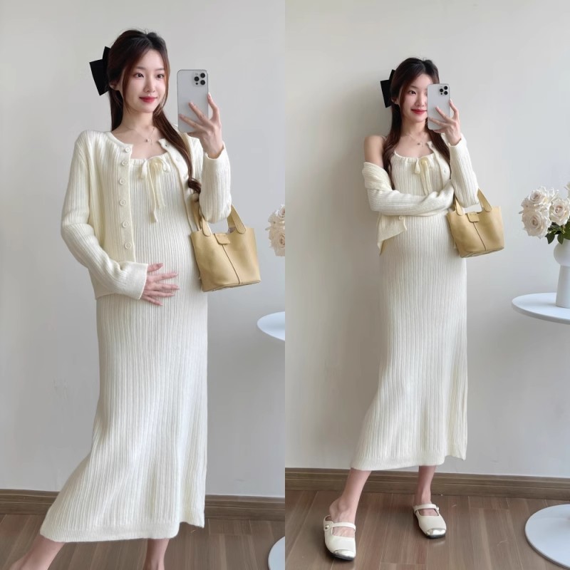 ชุดคลุมท้องกระโปรงสลิงผู้หญิงหญิงตั้งครรภ์สวมใส่ด้านนอกเสื้อคาร์ดิแกนสองชิ้นไวท์เทนนิ่งอ่อนโยน2025อารมณ์สไตล์ใหม่เวอร์ชั่นเกาหลีชุ