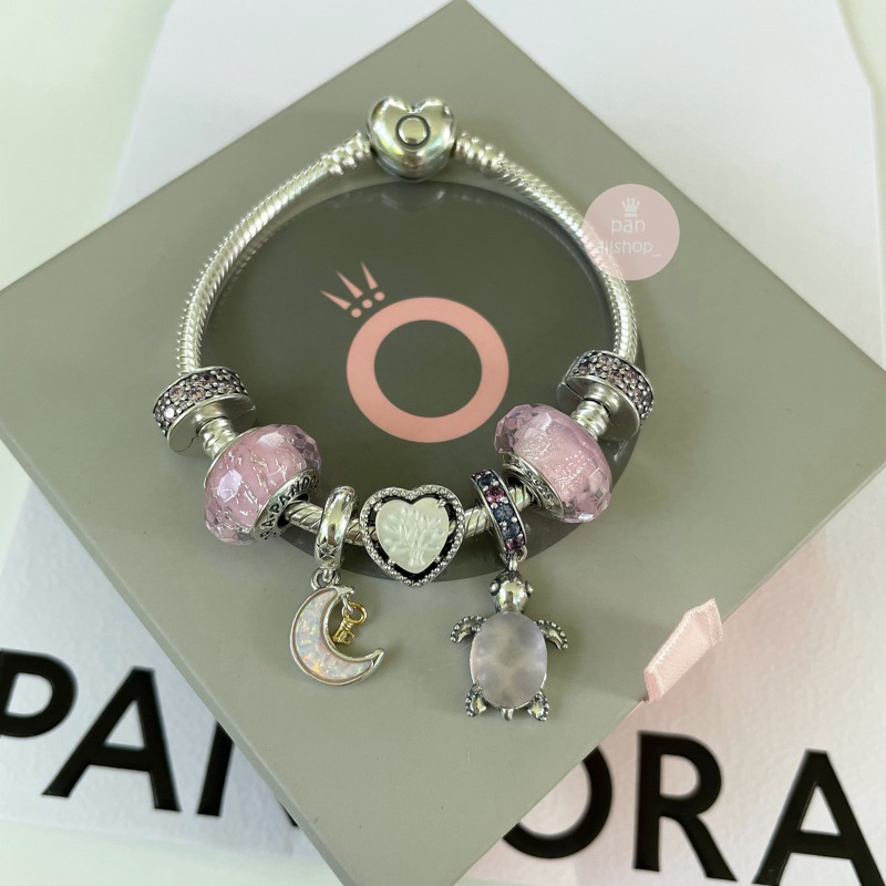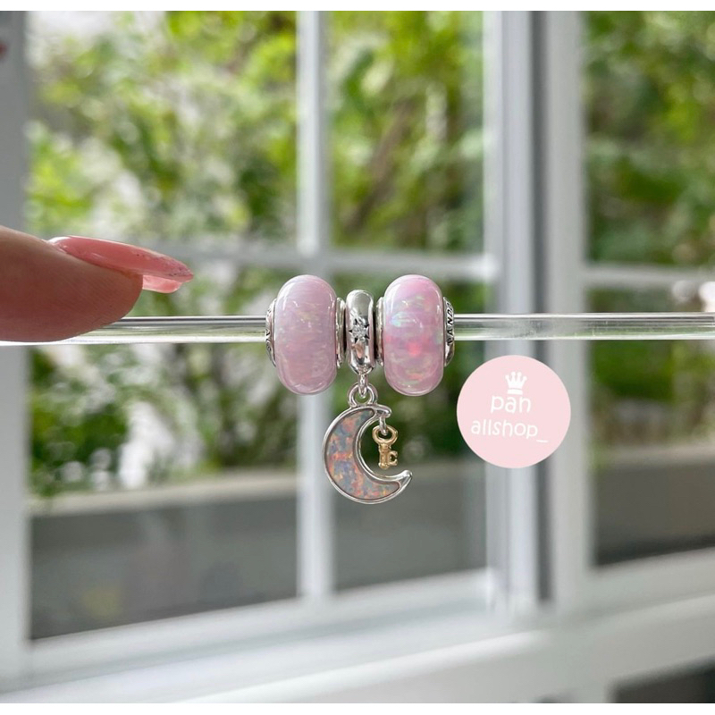 (ของแท้100%)Pandora silver charm Two-tone Key & Moon ชาร์ม โอปอลล์ พระจันทร์
