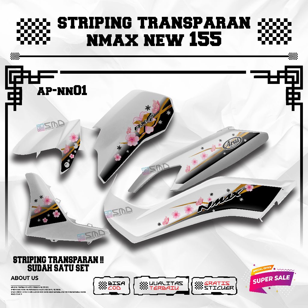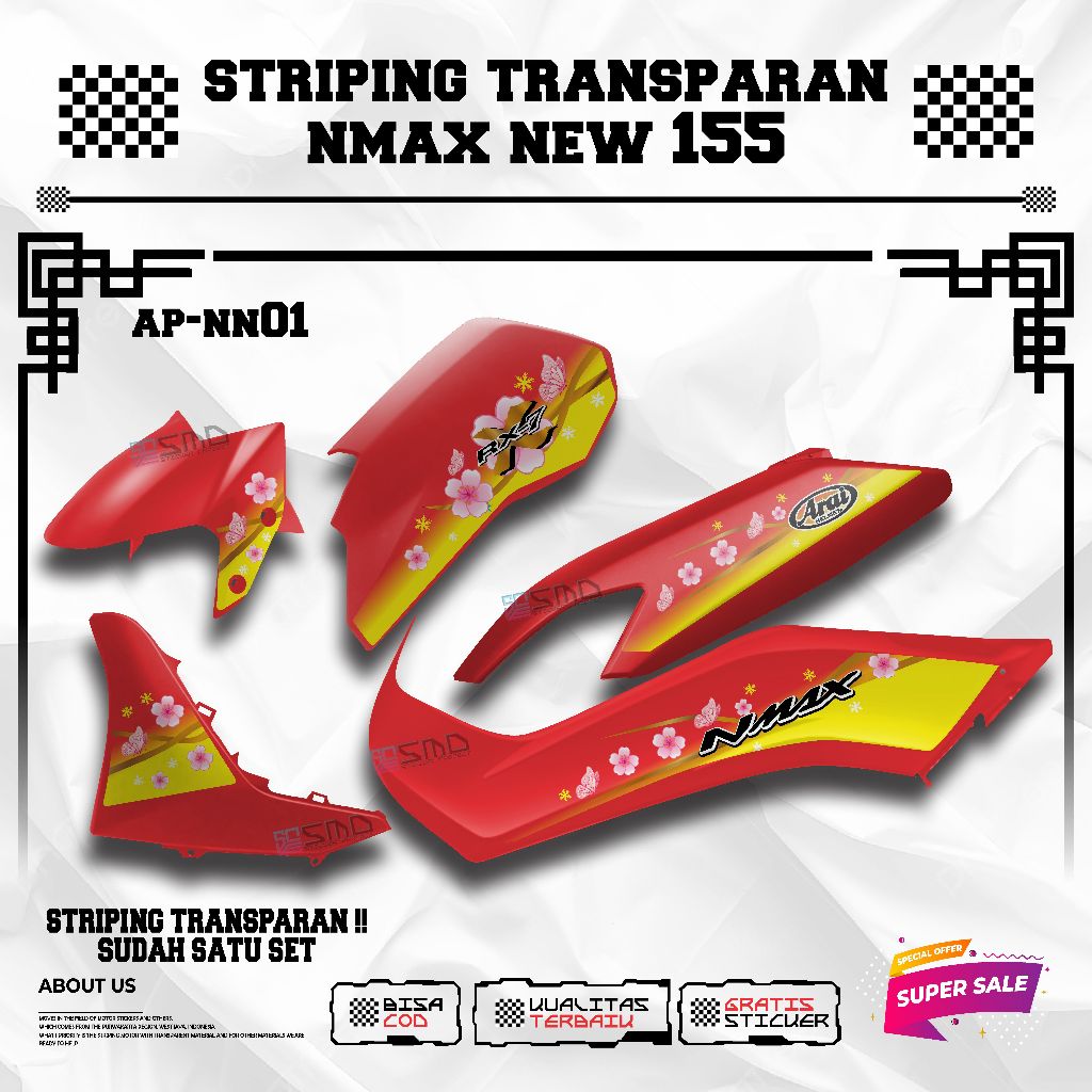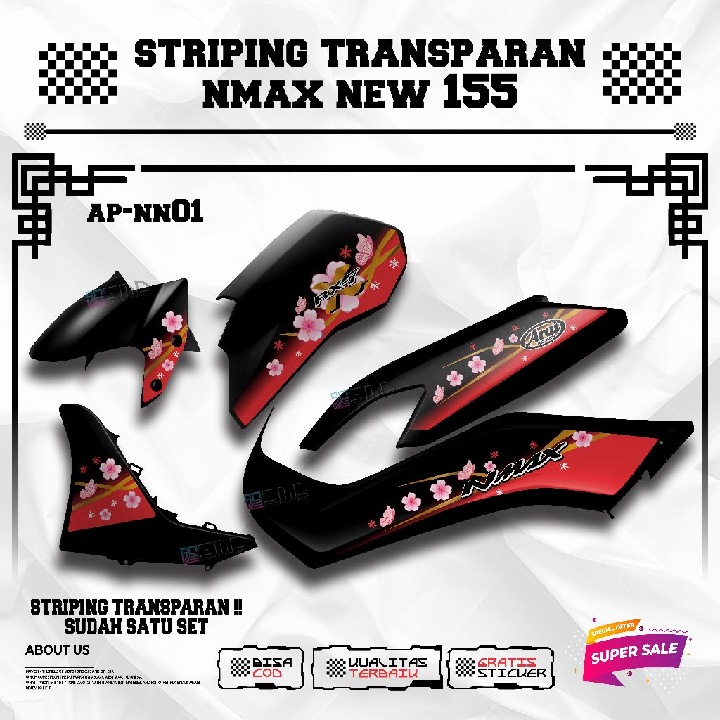 Transparent Striping yamaha nmax new Motif Arai Flower Viral Elegant Motorcycle Sticker คุณภาพสูง