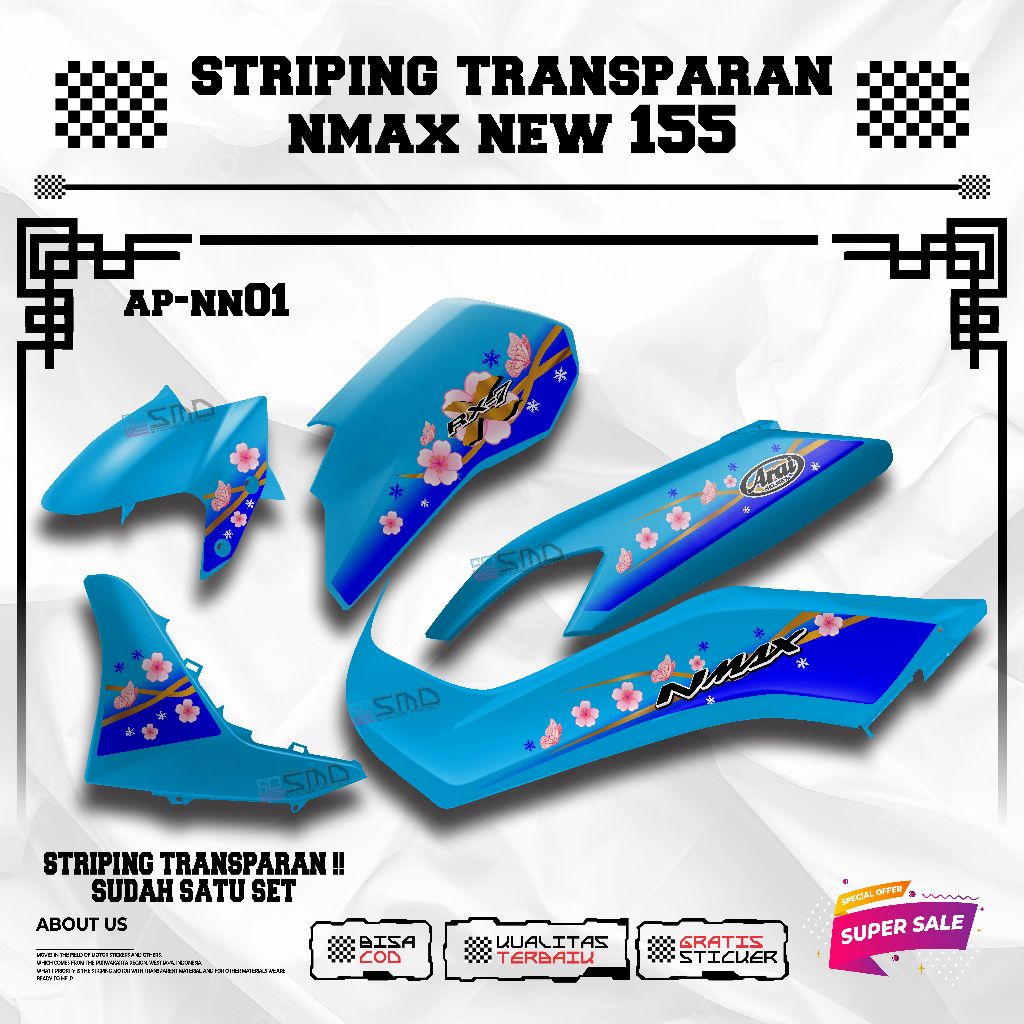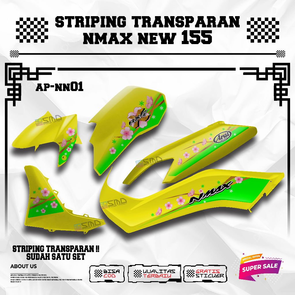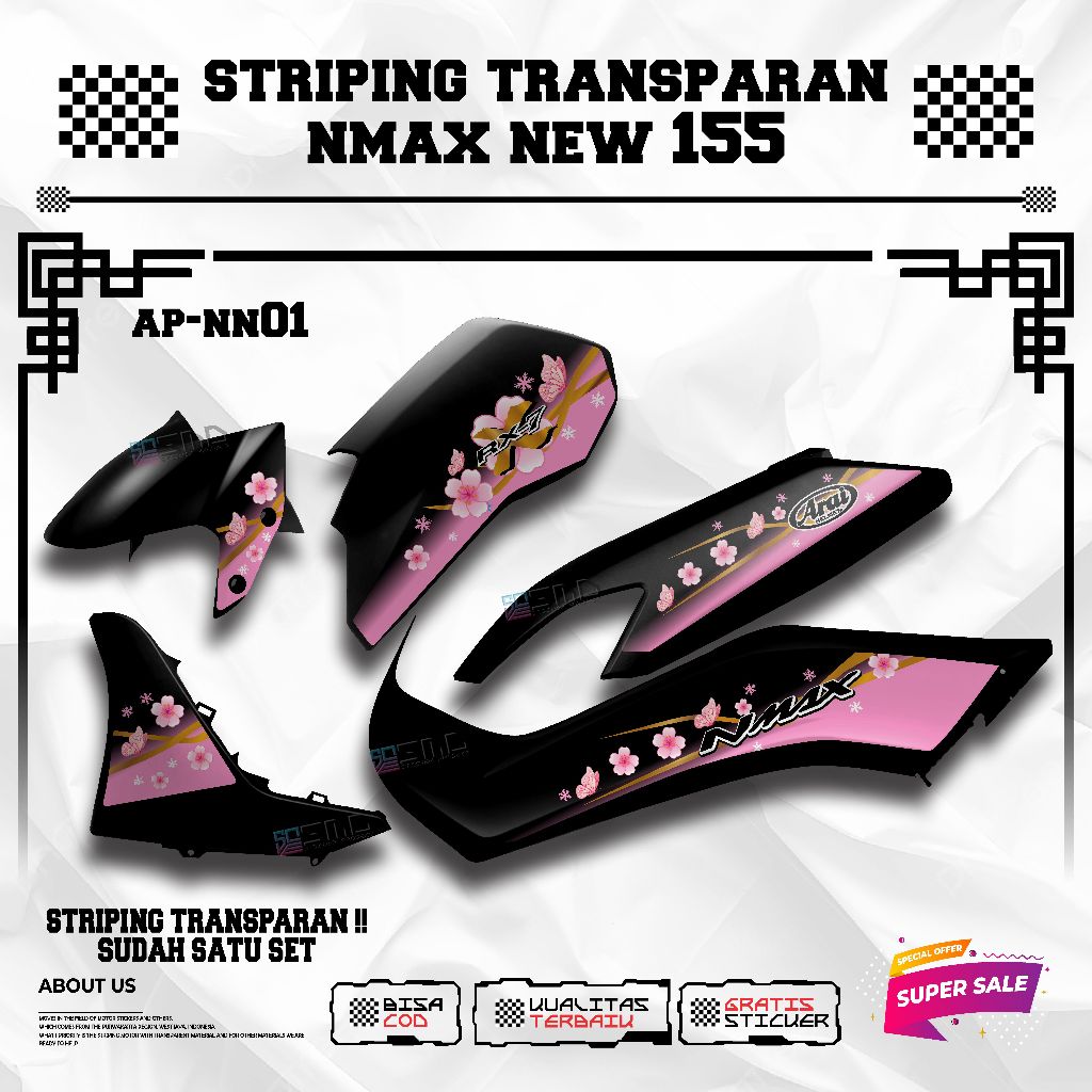 Transparent Striping yamaha nmax new Motif Arai Flower Viral Elegant Motorcycle Sticker คุณภาพสูง