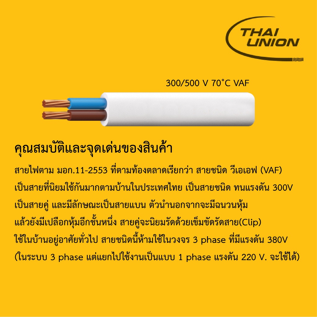 VAF 2x1 Sq. สายไฟ สายทองแดง Thai Union ไทยยูเนียน ตัดแบ่งขาย