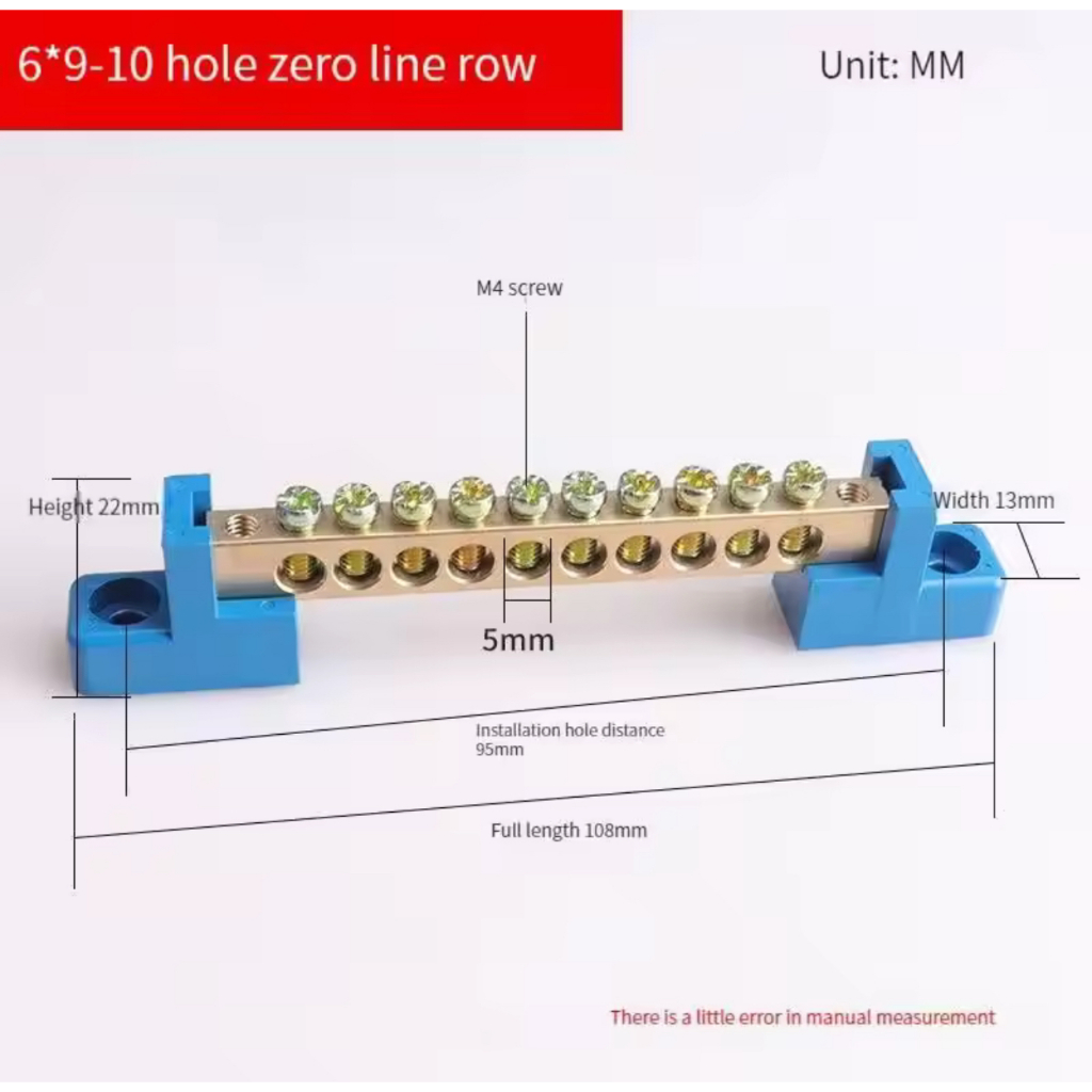 เทอร์มินอล บาร์ Terminal bar บาร์กราวด์ 6x9mm. บาร์กราวด์ ทองเหลือง บาร์นิวทรัล เทอร์มินอล บาร์ 4ช่อง-12ช่อง
