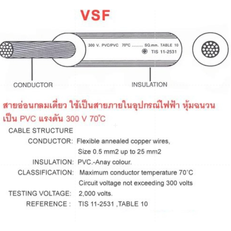 100เมตร สายไฟ สายอ่อน VSF S SUPER มาตรฐาน มอก. เบอร์ 1-2.5 Sq.mm