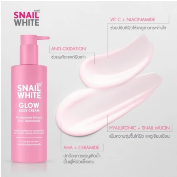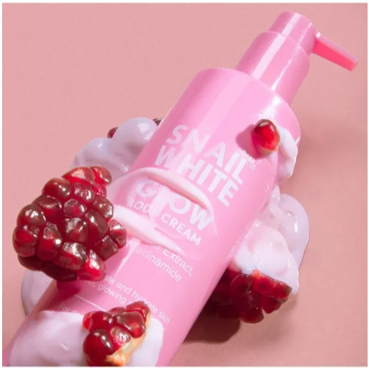 (Exp4/4/2026)สเนลไวท์โกลว์บอดี้ครีม SNAILWHITE GLOWBODY CREAM 300ML ครีมบำรุงผิวกายผสมสารสกัดจากทับทิม