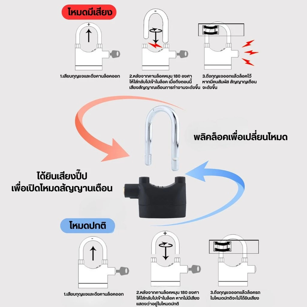 กุญแจกันขโมย ยิ่งงัด ยิ่งร้อง ความดังเสียง 110dB.ใช้ล็อค บ้าน / มอเตอร์ไซค์ / จักรยาน /ประตูรั้ว