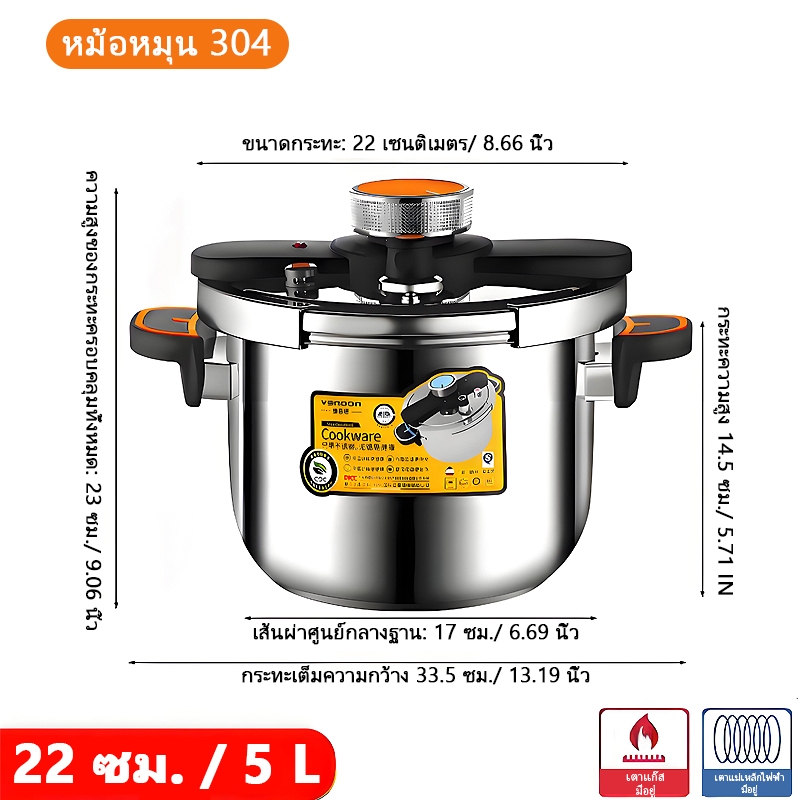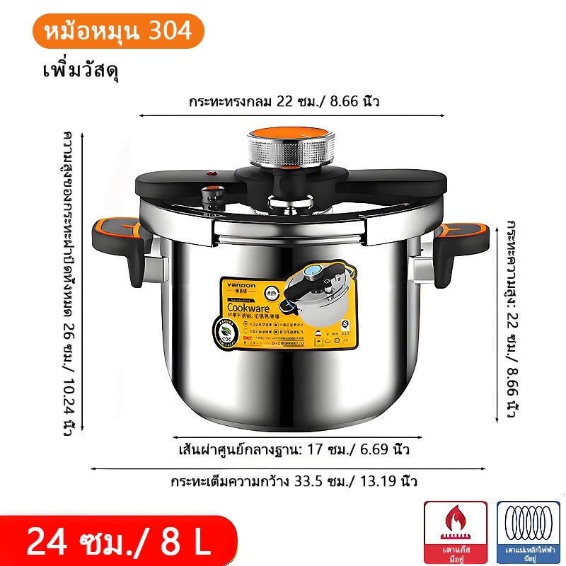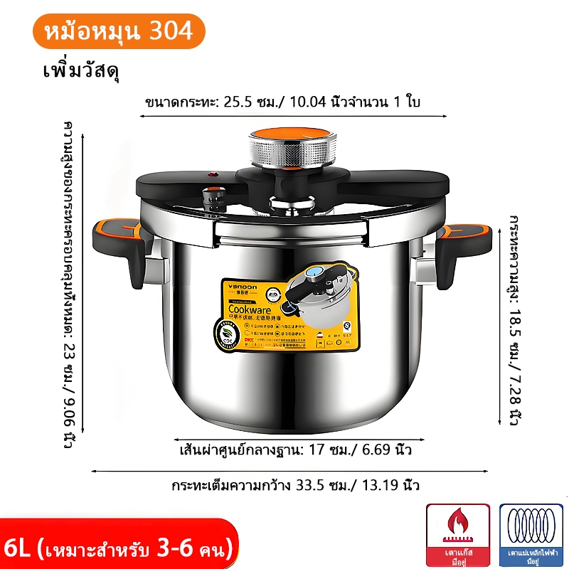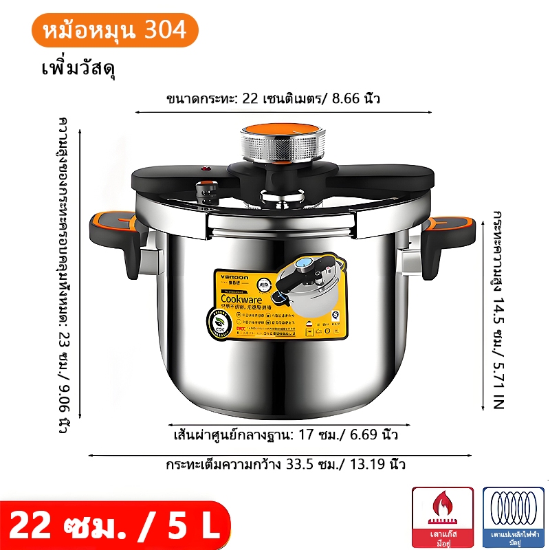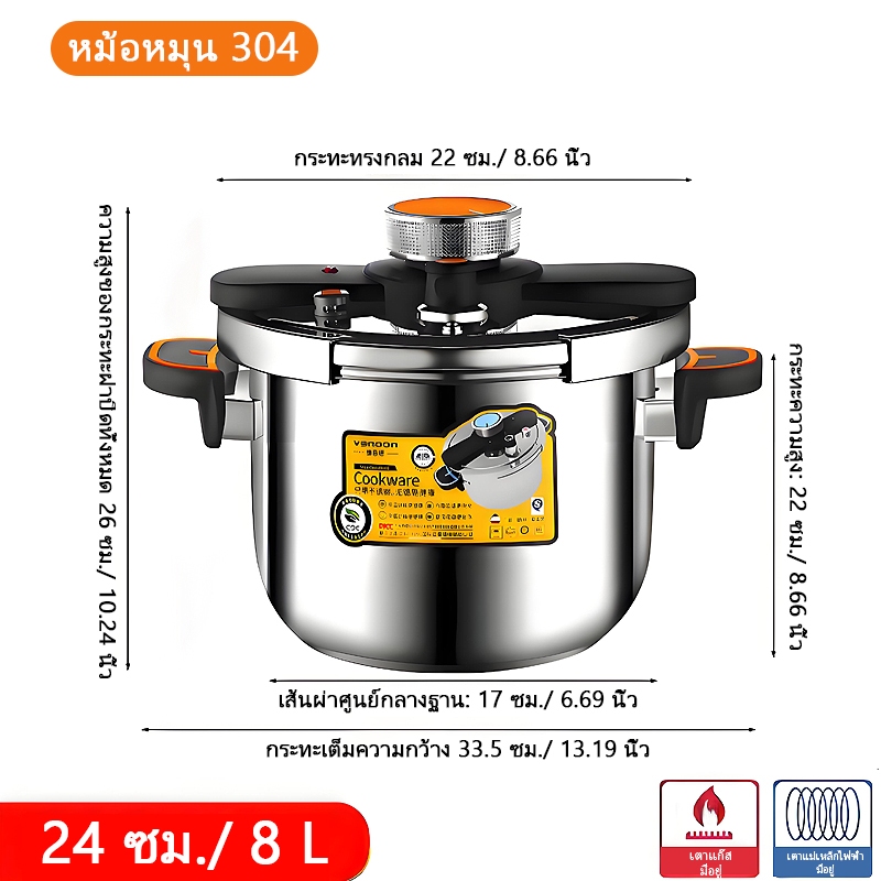 หม้อความดันสแตนเลส304วาล์วเดียว, หม้อความดันวาล์วเดียว, หม้อความดันสูง, หม้อตุ๋น, ใช้ได้เตาแก๊ส-เตาแม่เหล็ก, ปลอดภัยทนทา