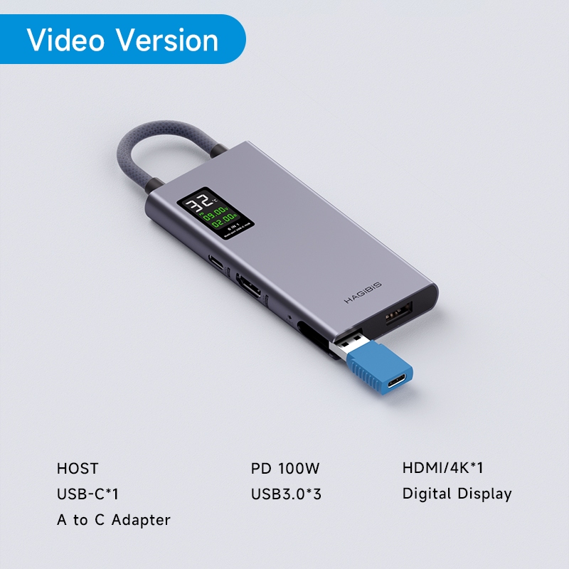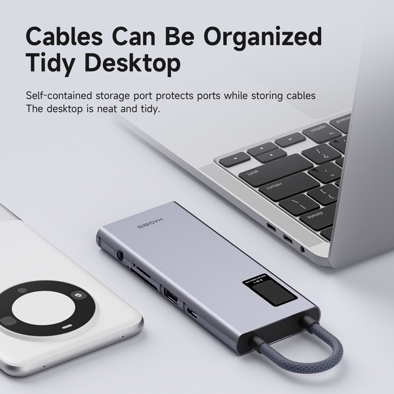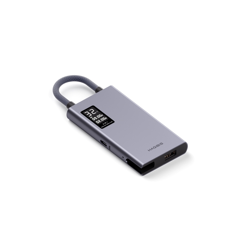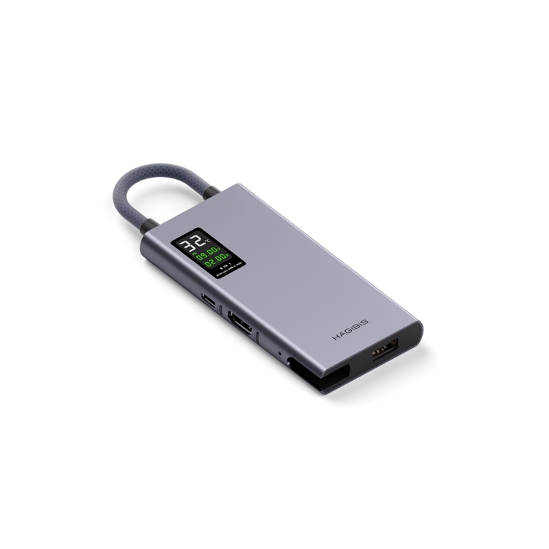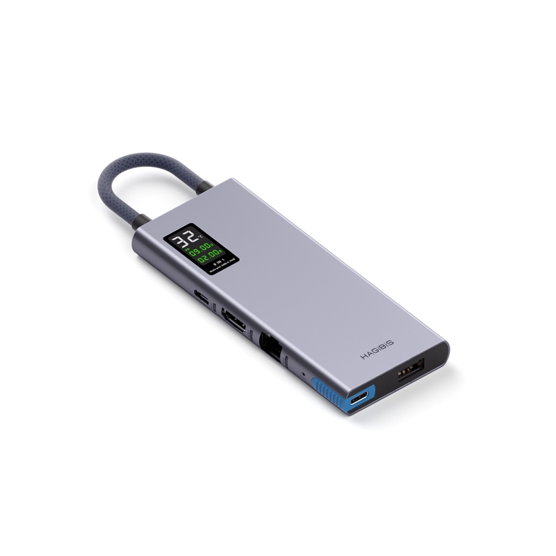 Hagibis USB C Hub จอแสดงผล LCD Type C Multiport อะแดปเตอร์ 4K HDMI-ใช้งานร่วมกับ 100W PD Gigabit Ethernet โทรศัพท์มือถือเชื่อมต่อ U Disk/SD/TF Data Transfer สําหรับ Macbook Pro iPad