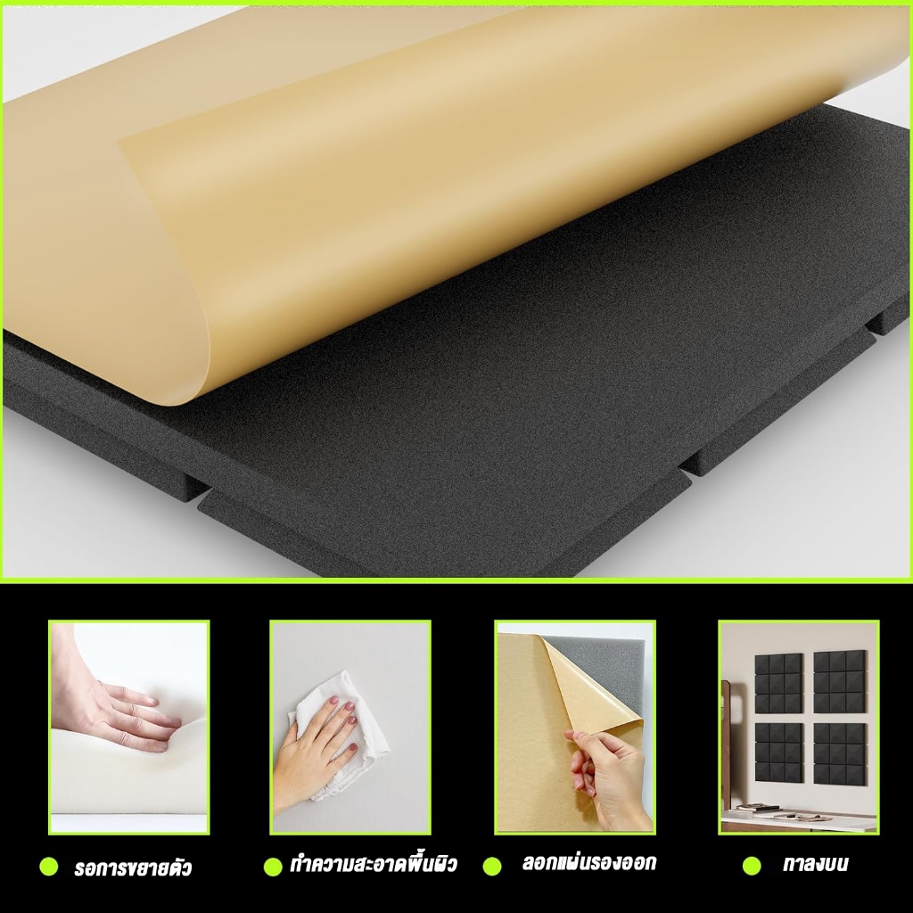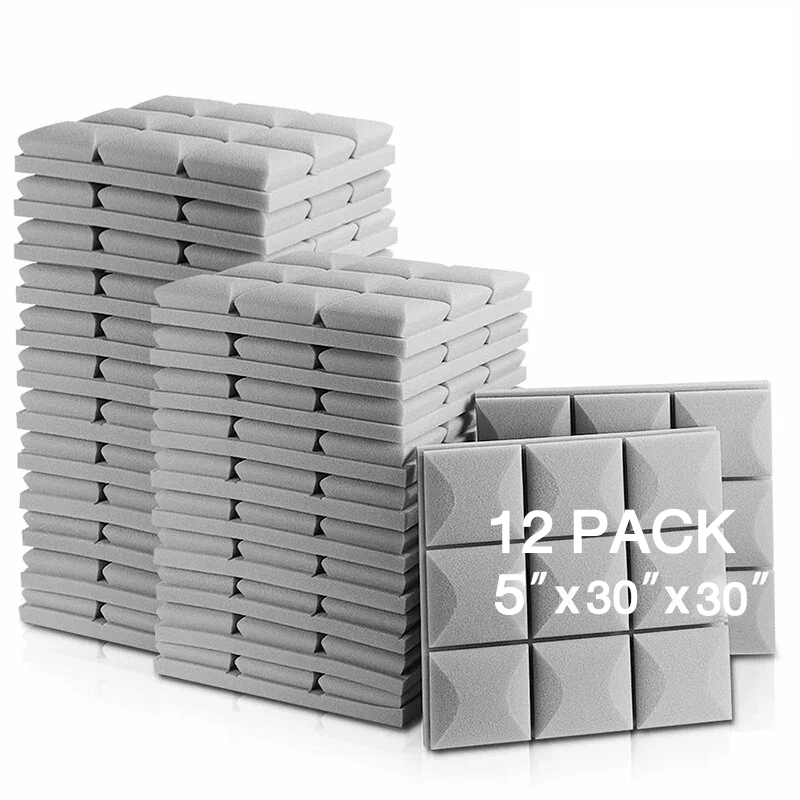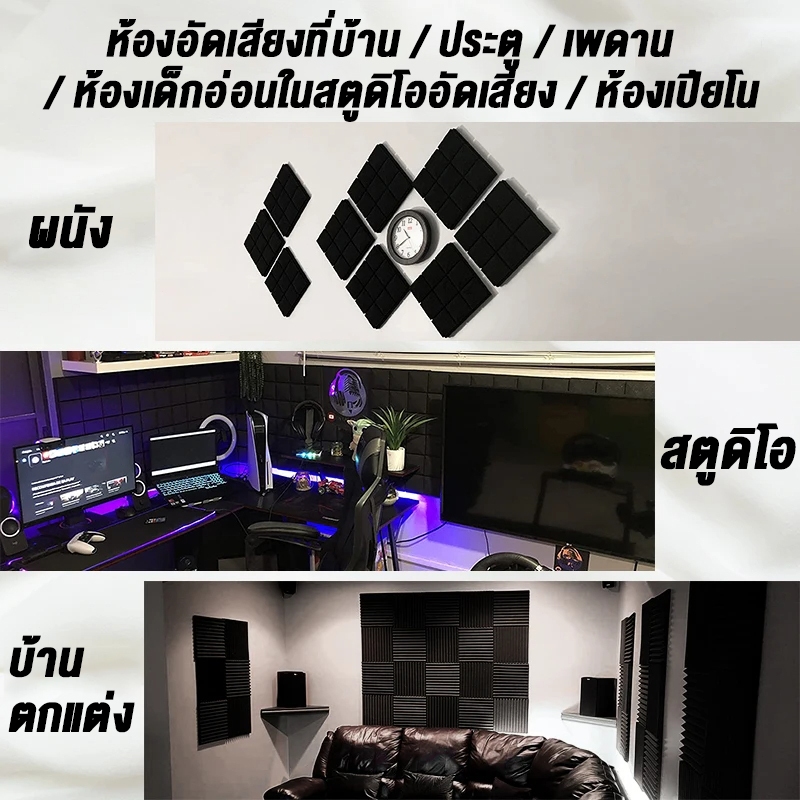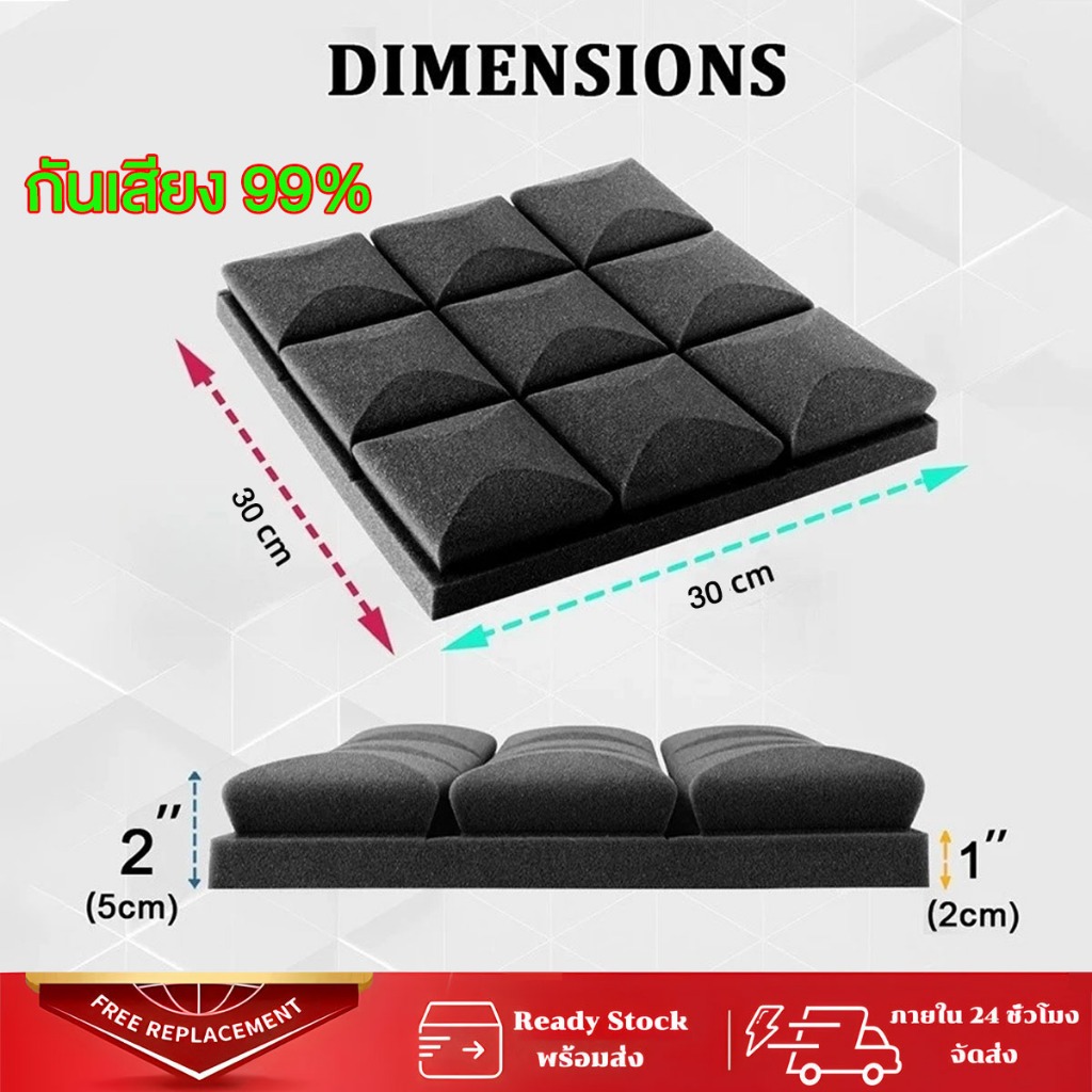 【COD】12 ชิ้นต่อห่อ แผ่นซับเสียง ลายไดมอนด์ 30x30หนา 5cm ฟองน้ำซับเสียง เหมาะสำหรับผนังห้อง แผ่นซับเสียง