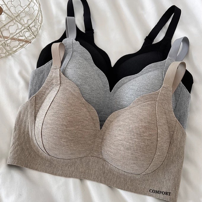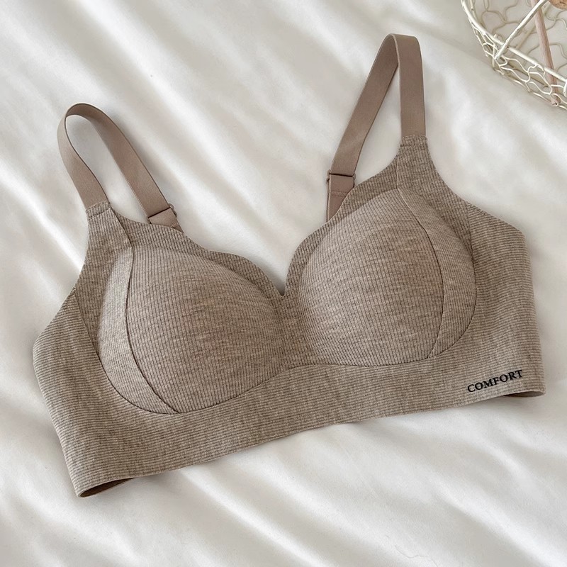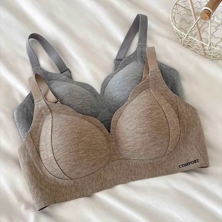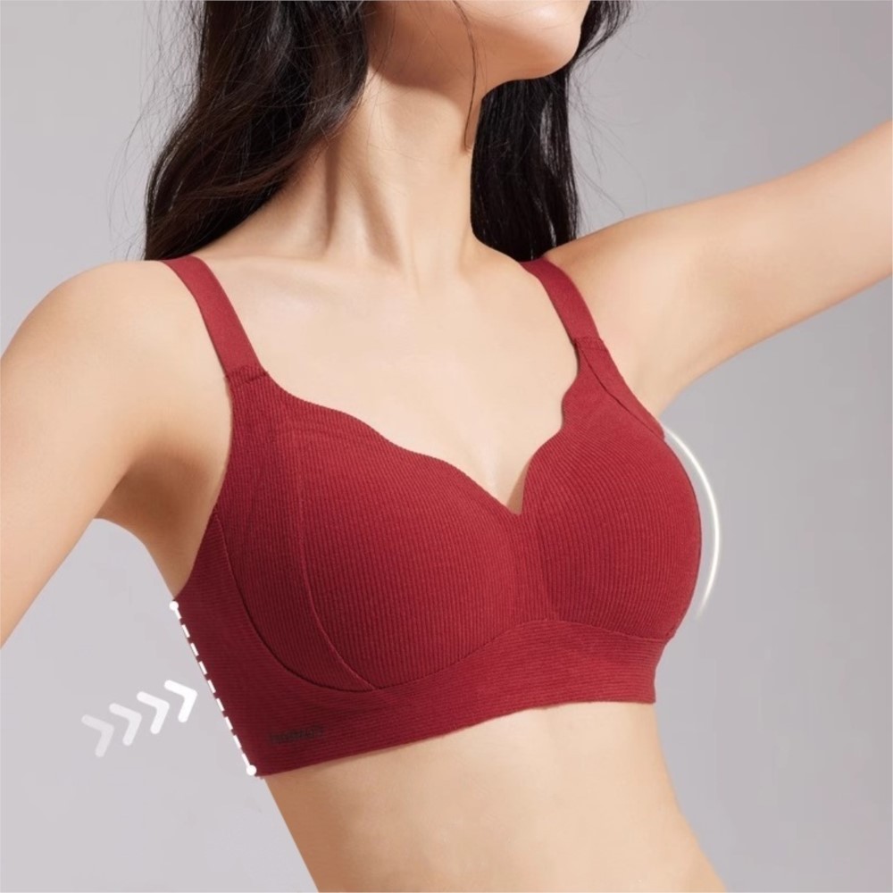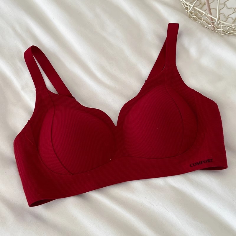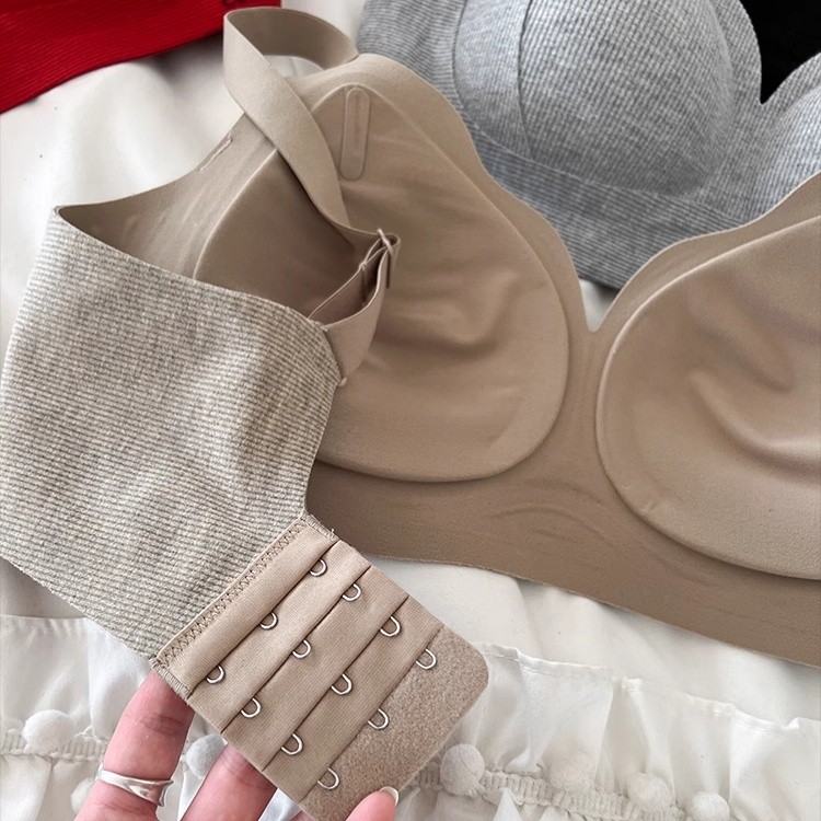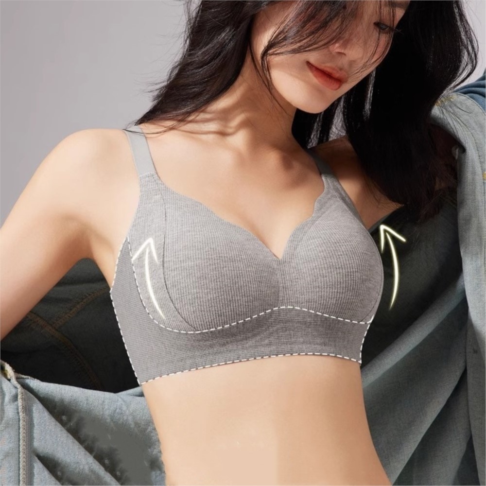 ชุดชั้นในไร้รอยต่อของผู้หญิงทําจากวุ้นชุดชั้นในด้ายผ้าระบายอากาศในฤดูร้อนชุดชั้นในไม่มีร่องรอยยืดหยุ่นสูงคอวีชุดชั้นในผลักขึ้นเพื่อรวบรวมหน้าอกสว