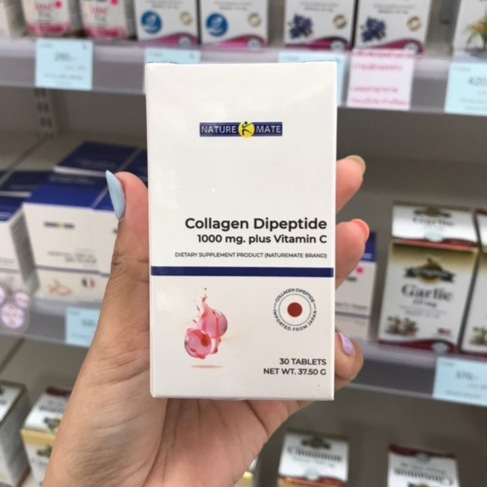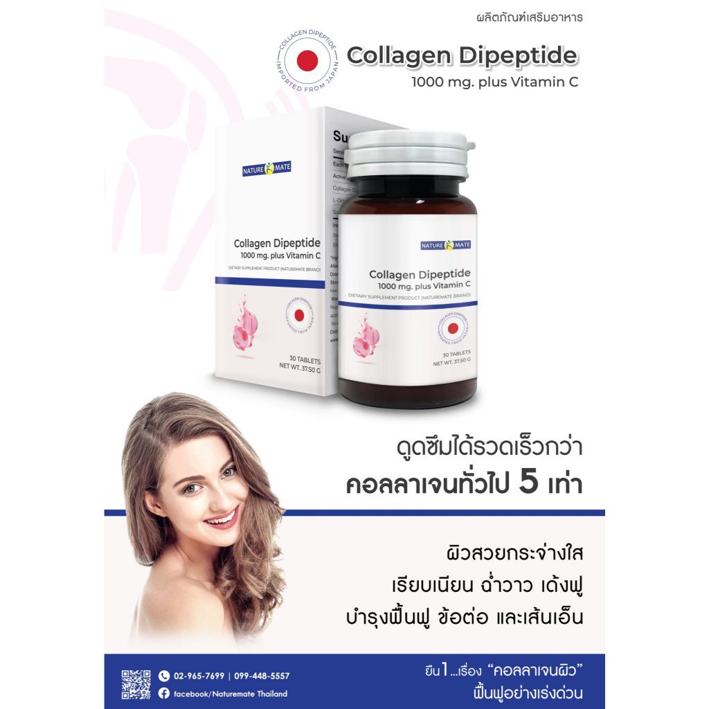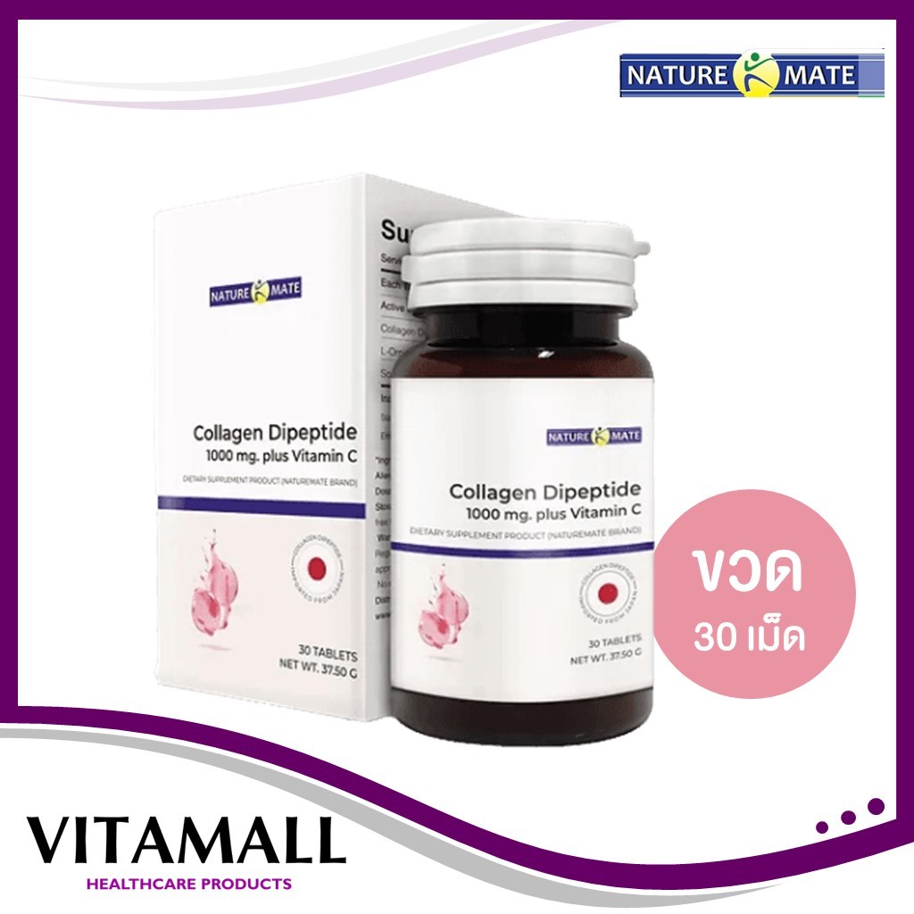 NATUREMATE COLLAGEN DIPEPTIDE 1000 MG PLUS VITAMIN C 30 TABLETS คอลลาเจนผิวผสมวิตามินซี ผิวกระจ่างใส เรียบเนียน ฉ่ำฟู