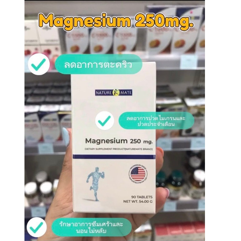Naturemate Magnesium แมกนีเซียม 250 มิลลิกรัม /90 เม็ด**แถมฟรีของแถมสุ่ม 1 ซอง**