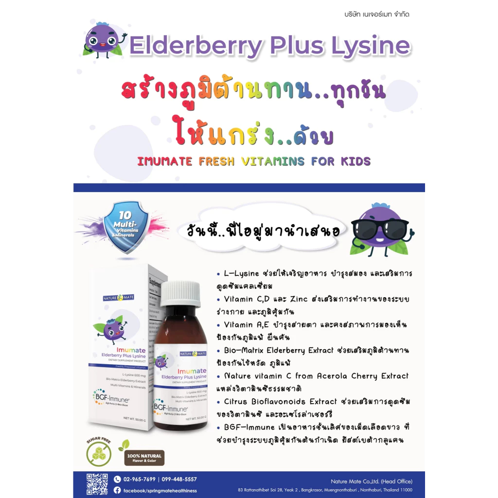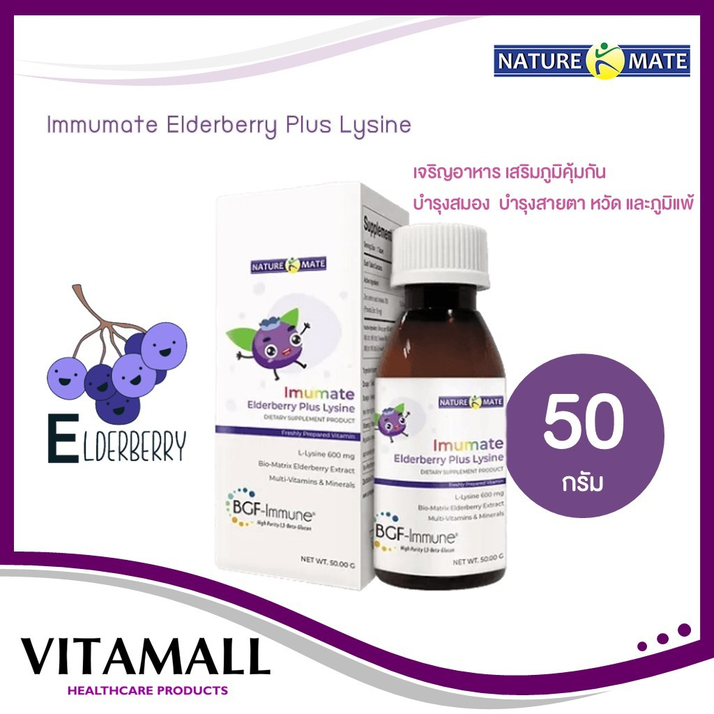 Naturemate Imumate (Elderberry+Lysine) 50กรัม เสริมภูมิคุ้มกัน เด็กเบื่ออาหาร**แถมฟรีของแถมสุ่ม 1 ซอง**