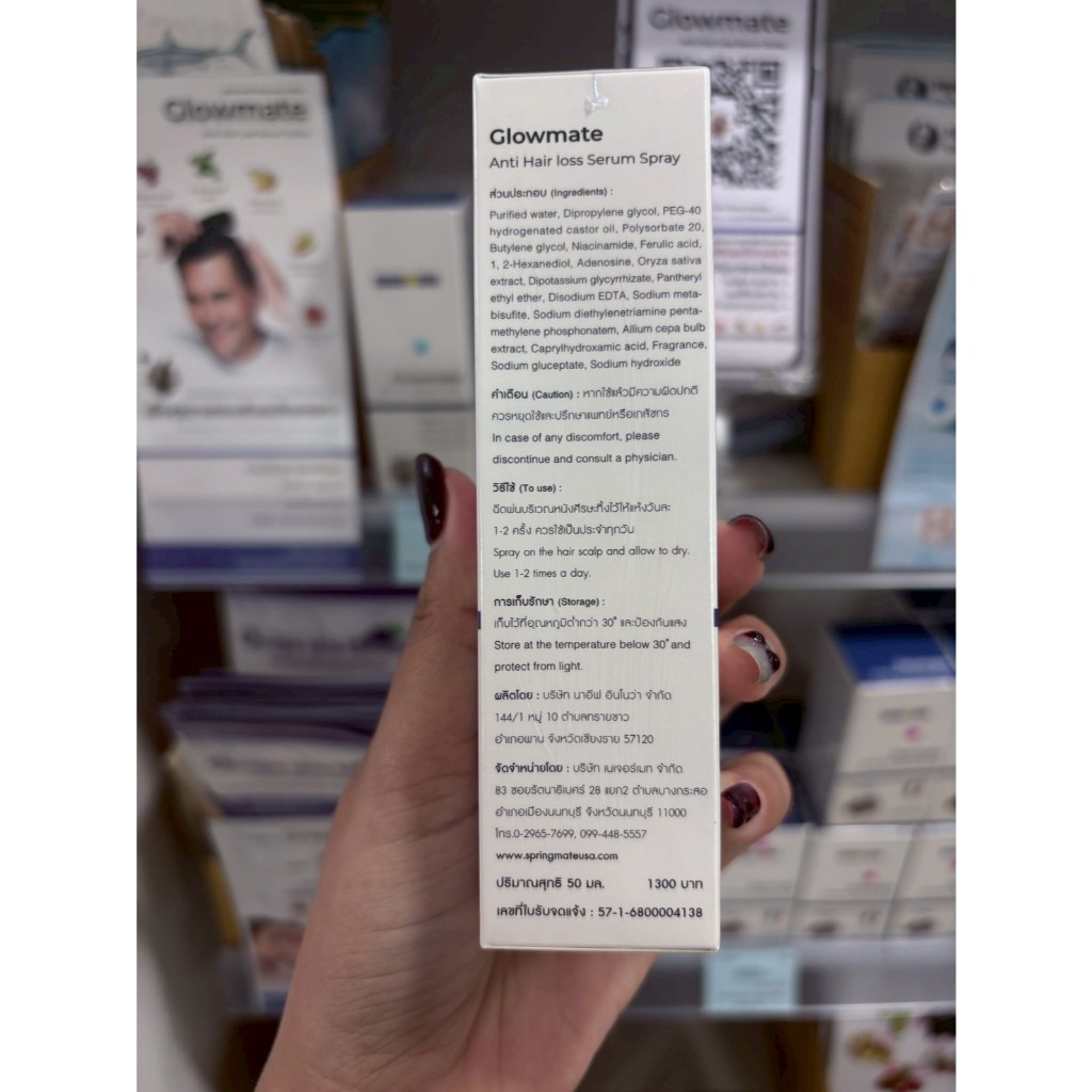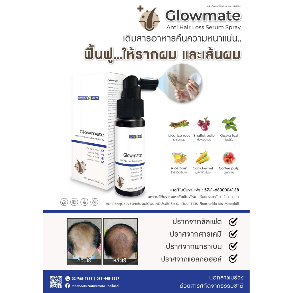 Glowmate สเปรย์ลดผมร่วง ผมงอกก่อนวัยอันควร รากผมแข็งแรง สารสกัดจากข้าวบือบาง 50 มิลลิลิตร