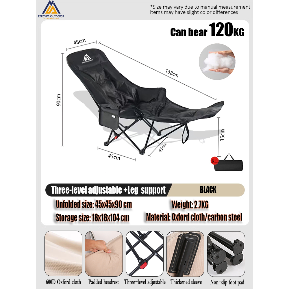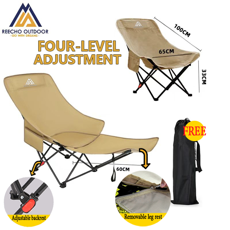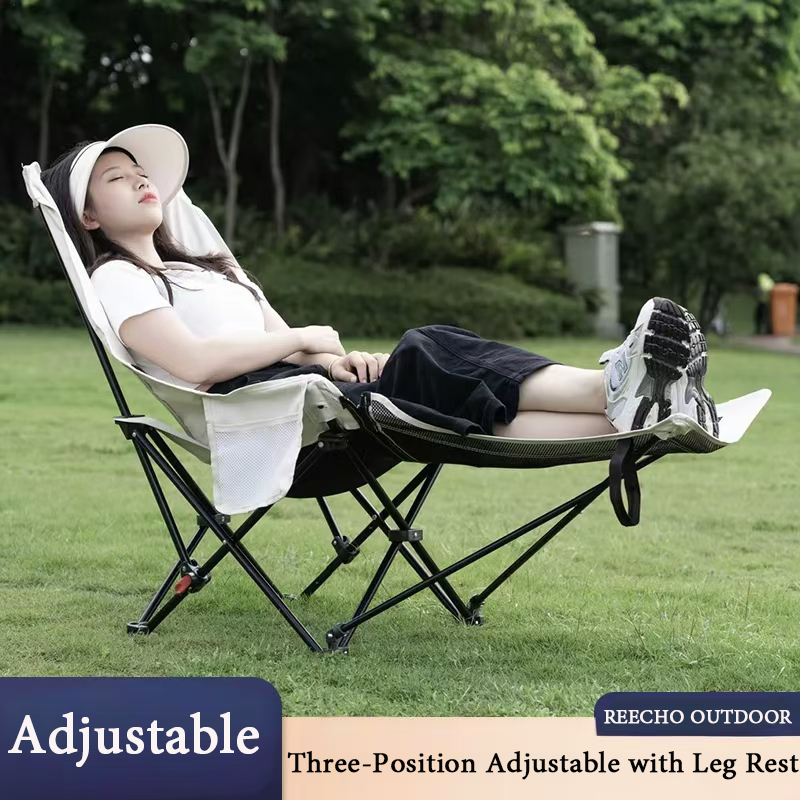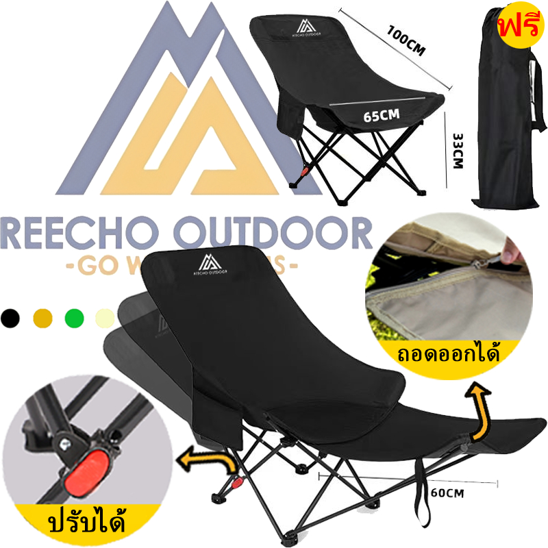 【REECHO OUTDOOR】เก้าอี้แคมป์ปิ้ง เก้าอี้พับ เก้าอี้ตั้งแคมป์พับได้พร้อมที่วางขา เก้าอี้พับปรับเอนได้ เก้าอี้พับกลางแจ้ง เก้าอี้พับ เก้าอี้ตกปลา เก้าอี้บาร์บีคิว เก้าอี้ปรับเอนได้สำหรับตั้งแคมป์