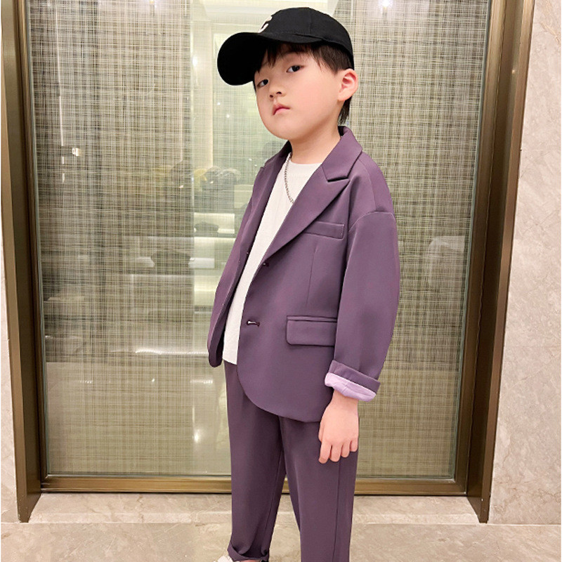 ชุดสูทเด็กชาย ชุดสูทเด็กชายดอกไม้ สไตล์เกาหลี ชุดลำลองสำหรับเด็ก ชุดสูทสีม่วง สำหรับพิธีรับปริญญา งานเลี้ยงวันเกิด งานแต่งงาน งานเลี้ยง การแสดง เสื้อผ้าทางการสำหรับเด็กชาย