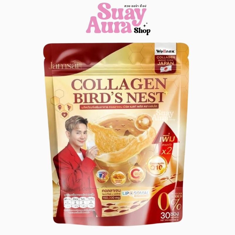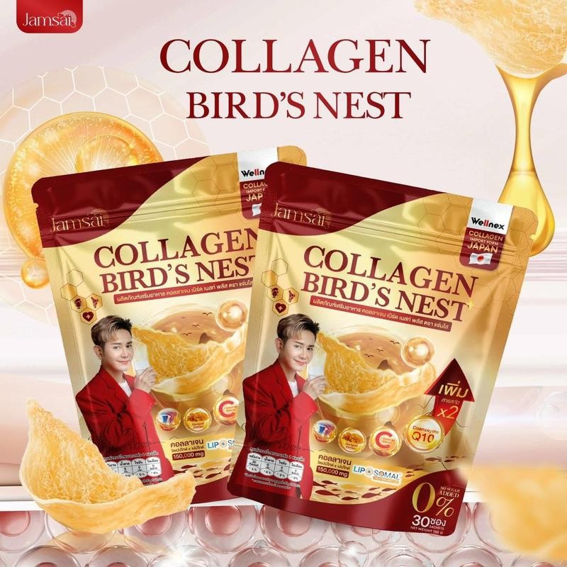 แจ่มใสรังนก ผลิตภัณฑ์เสริมอาหาร คอลลาเจน เบิร์ด เนสท์ พลัส ตรา เเจ่มใส 1 ห่อ บรรจุ 30 ซอง