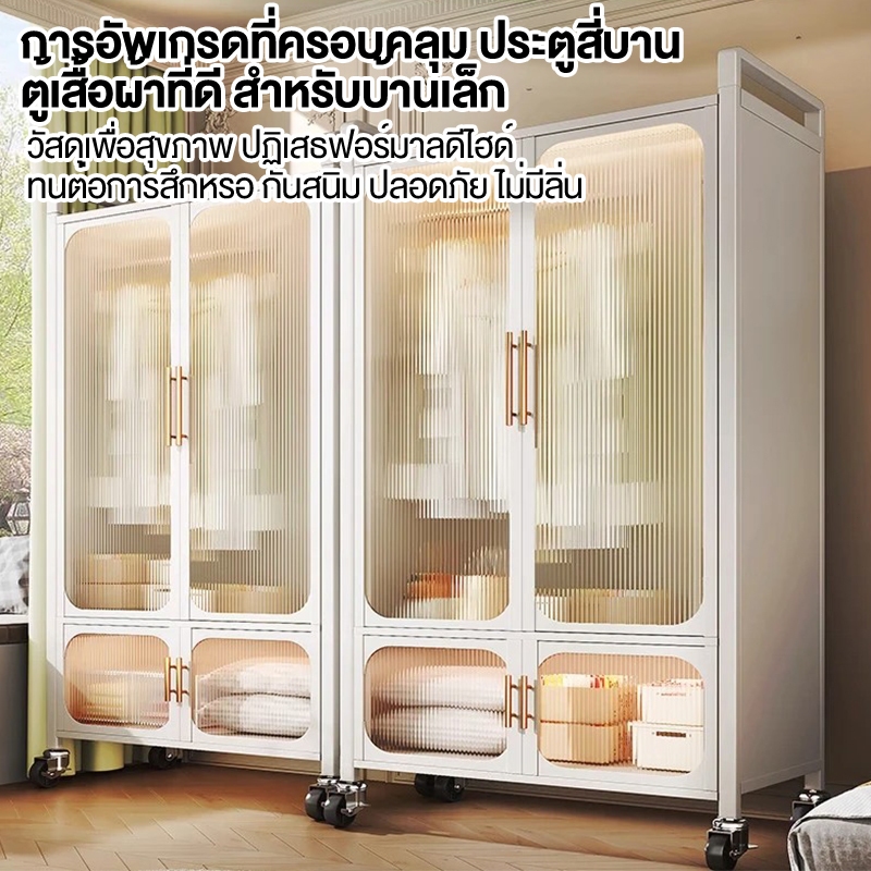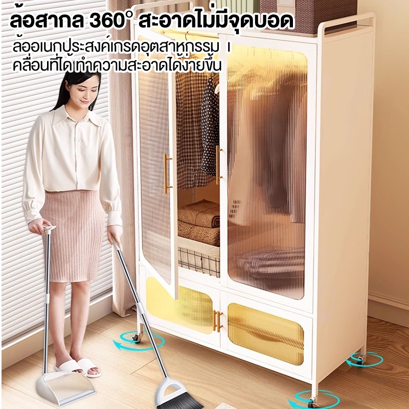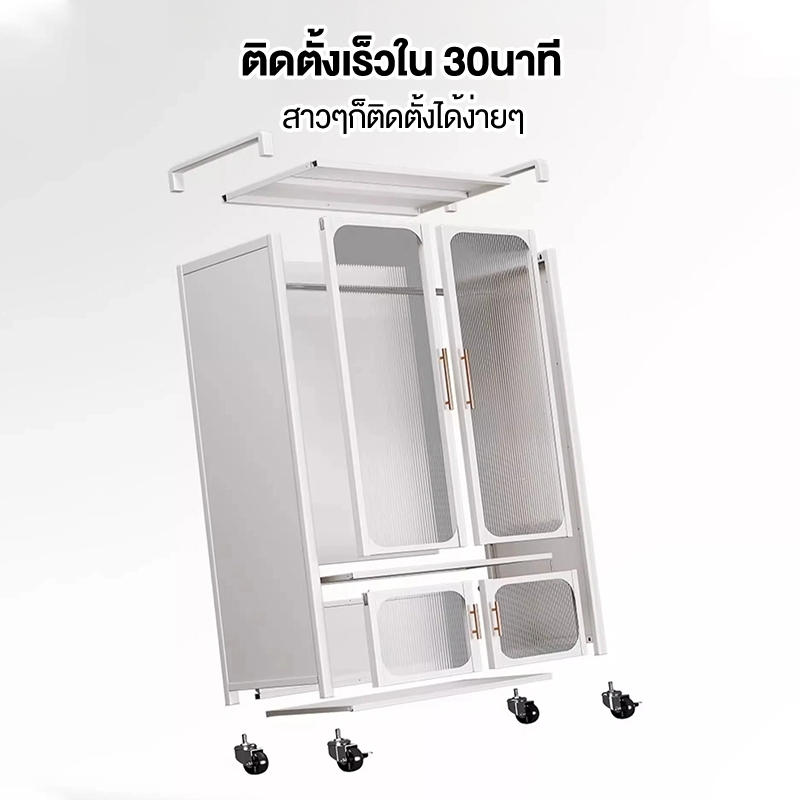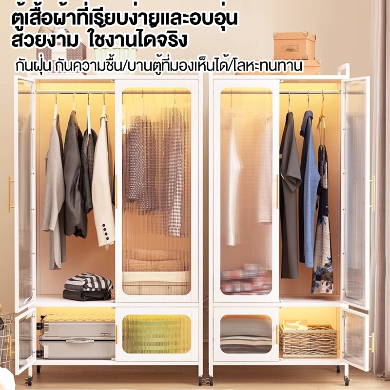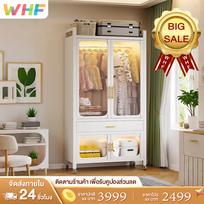 WHF ตู้เสื้อผ้า ตู้เสื้อผ้าสไตล์โมเดิร์นเรียบง่าย ห้องนอนในบ้าน ตู้เสื้อผ้าเหล็กดัด นมขาว