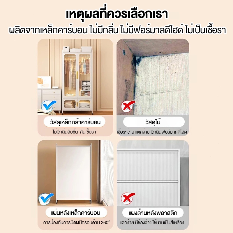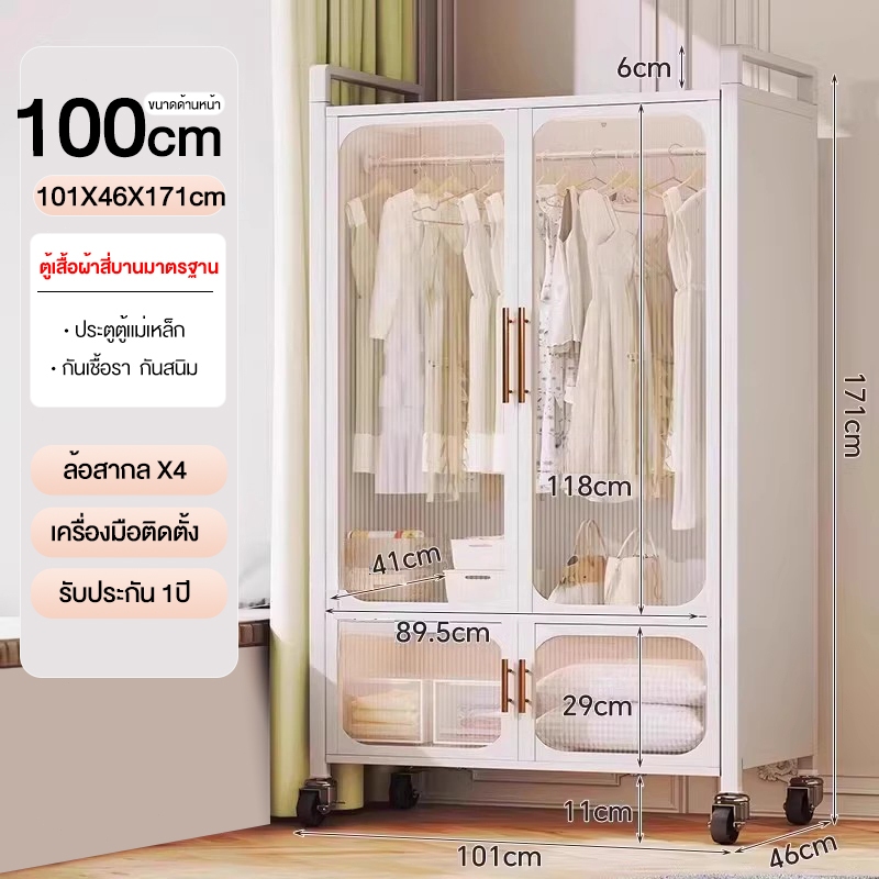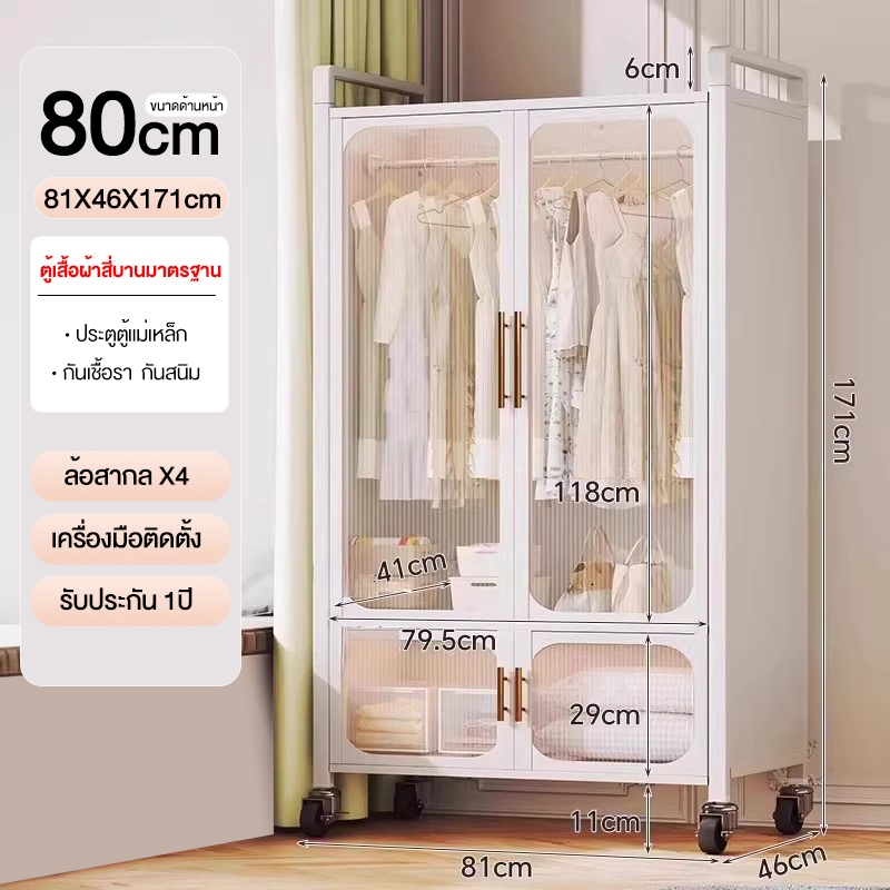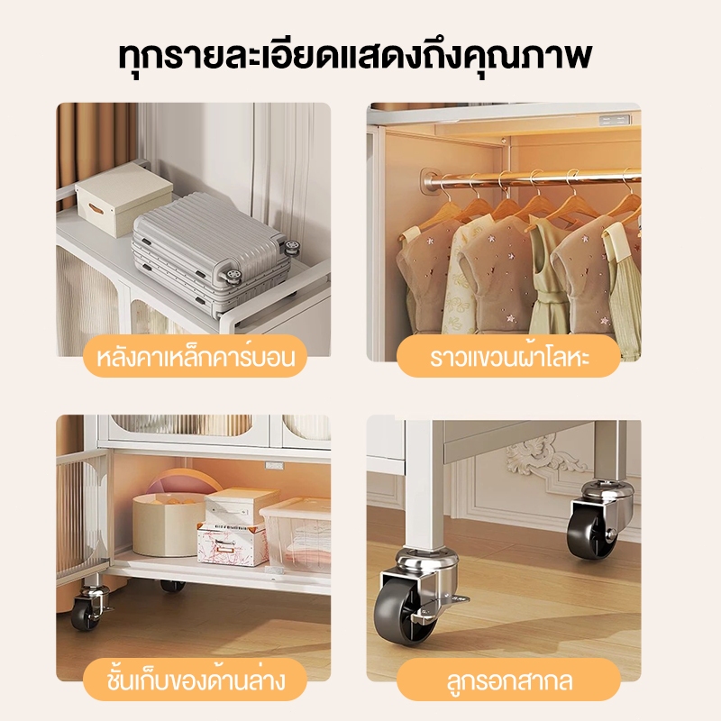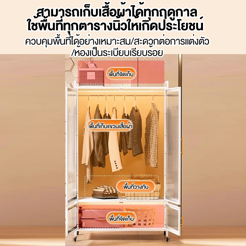 WHF ตู้เสื้อผ้า ตู้เสื้อผ้าสไตล์โมเดิร์นเรียบง่าย ห้องนอนในบ้าน ตู้เสื้อผ้าเหล็กดัด นมขาว