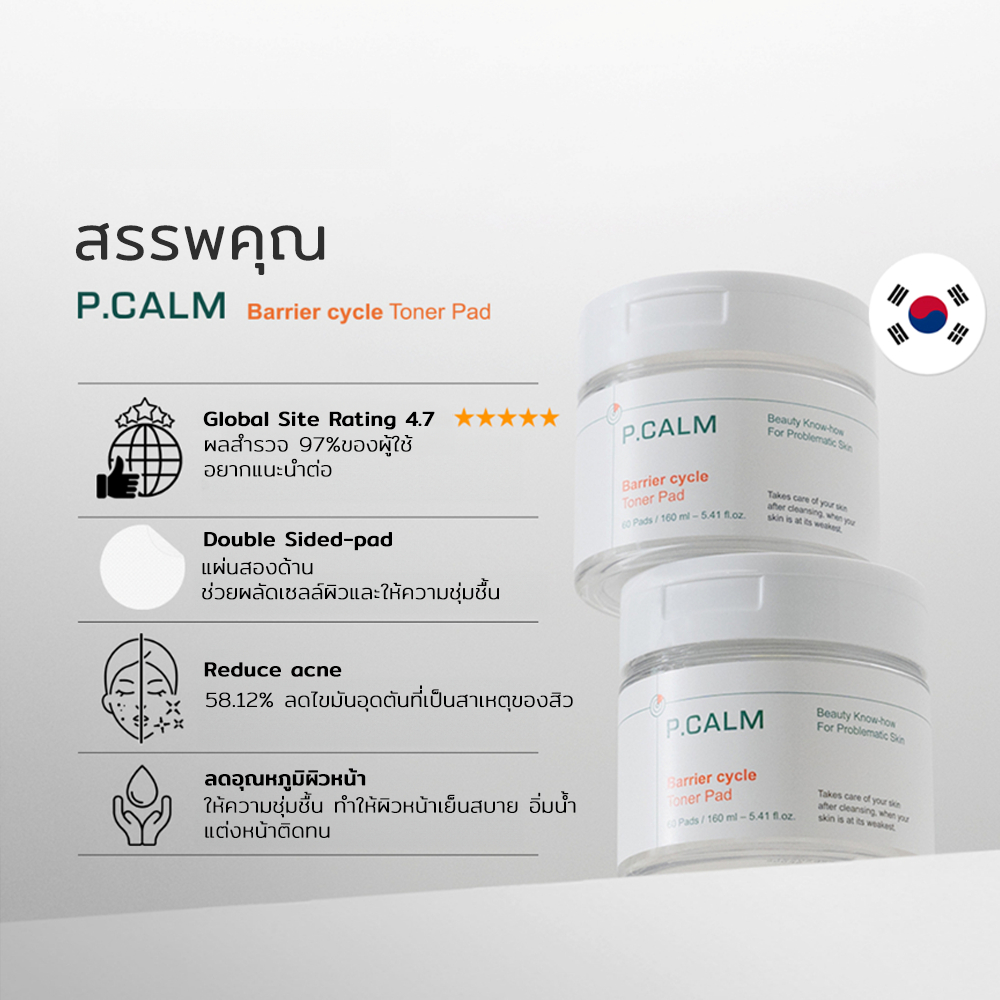 [P.CALM] Barrier_Cycle Toner Pad 160ml / 60ea โทนเนอร์แพดสำหรับผิวแพ้ง่ายและมีปัญหาสิว