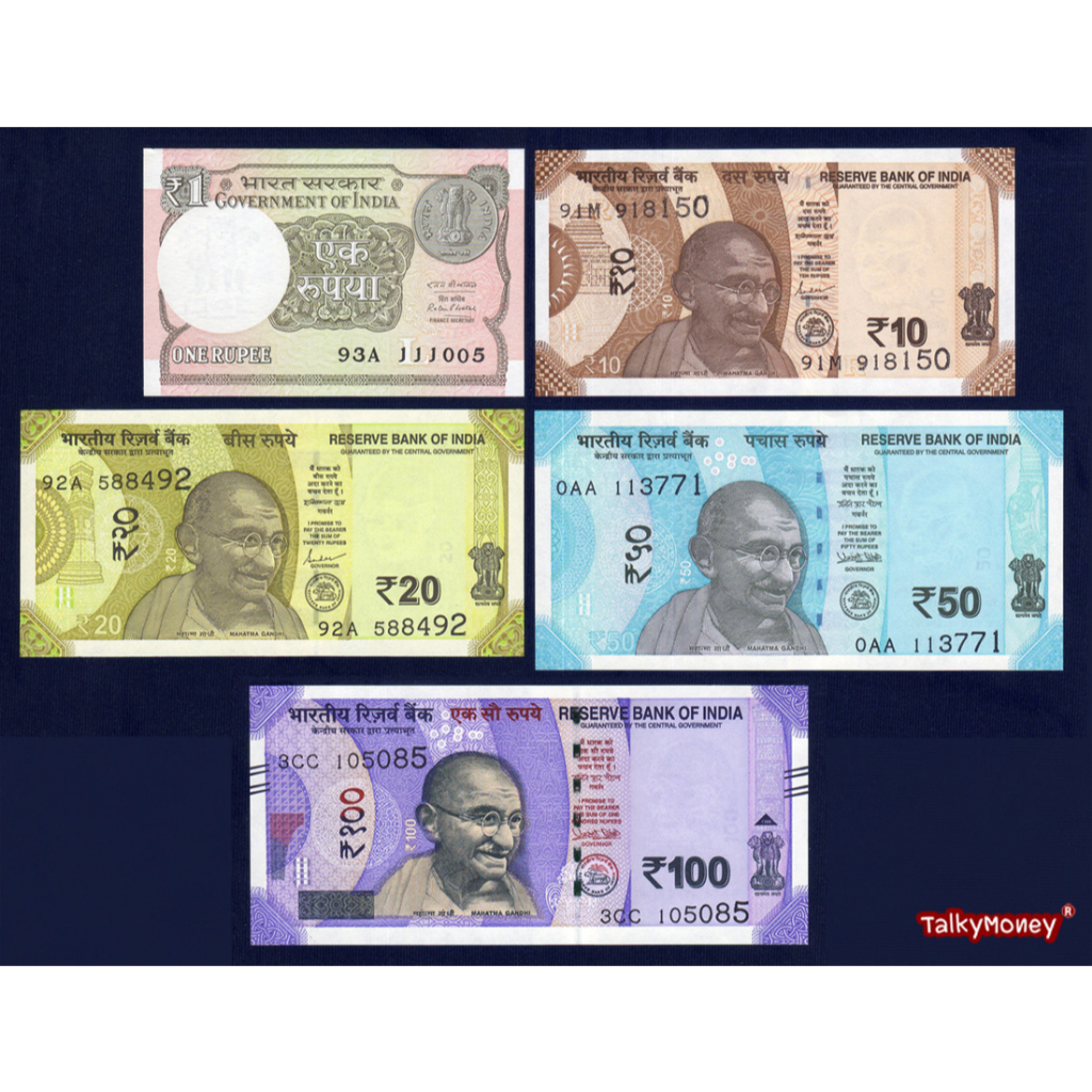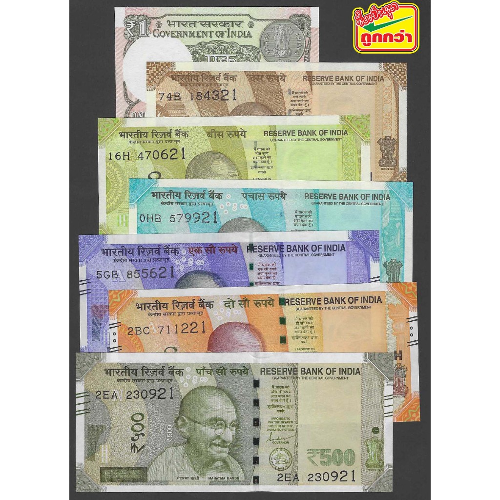 ธนบัตรจัดชุด 7 ใบ อินเดีย INDIA มหาตมะคานธี รุ่นใหม่ IND-NSET สภาพใหม่เอี่ยม 100% UNC สำหรับสะสมและที่ระลึก
