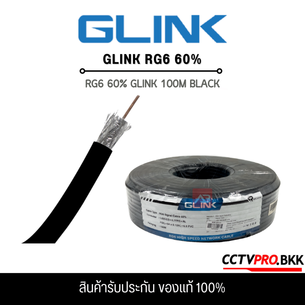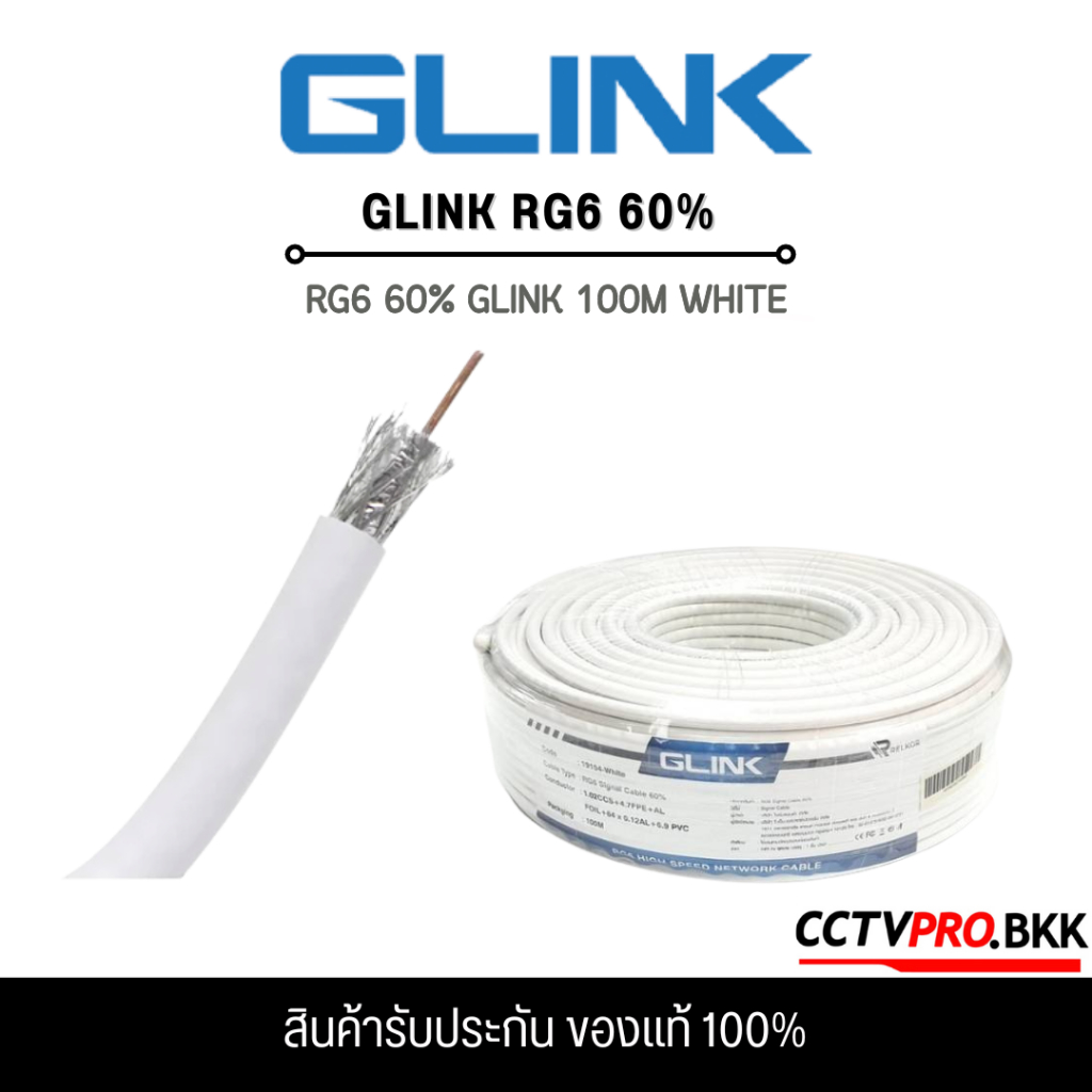 GLINK RG6 RG6 60% 100M WHITER/BLACK เป็นสาย Outdoor