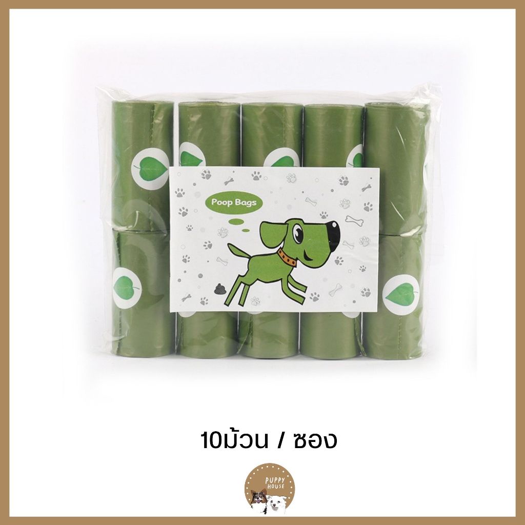 ถุงเก็บอึสัตว์เลี้ยง Poop Bags (15ใบ/ม้วน) หนา เหนียว ไม่รั่วซึม ระงับกลิ่นอึได้ ย่อยสลายได้