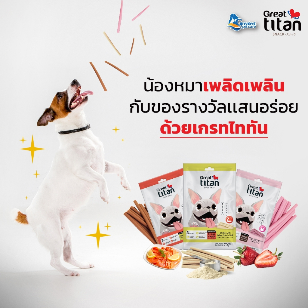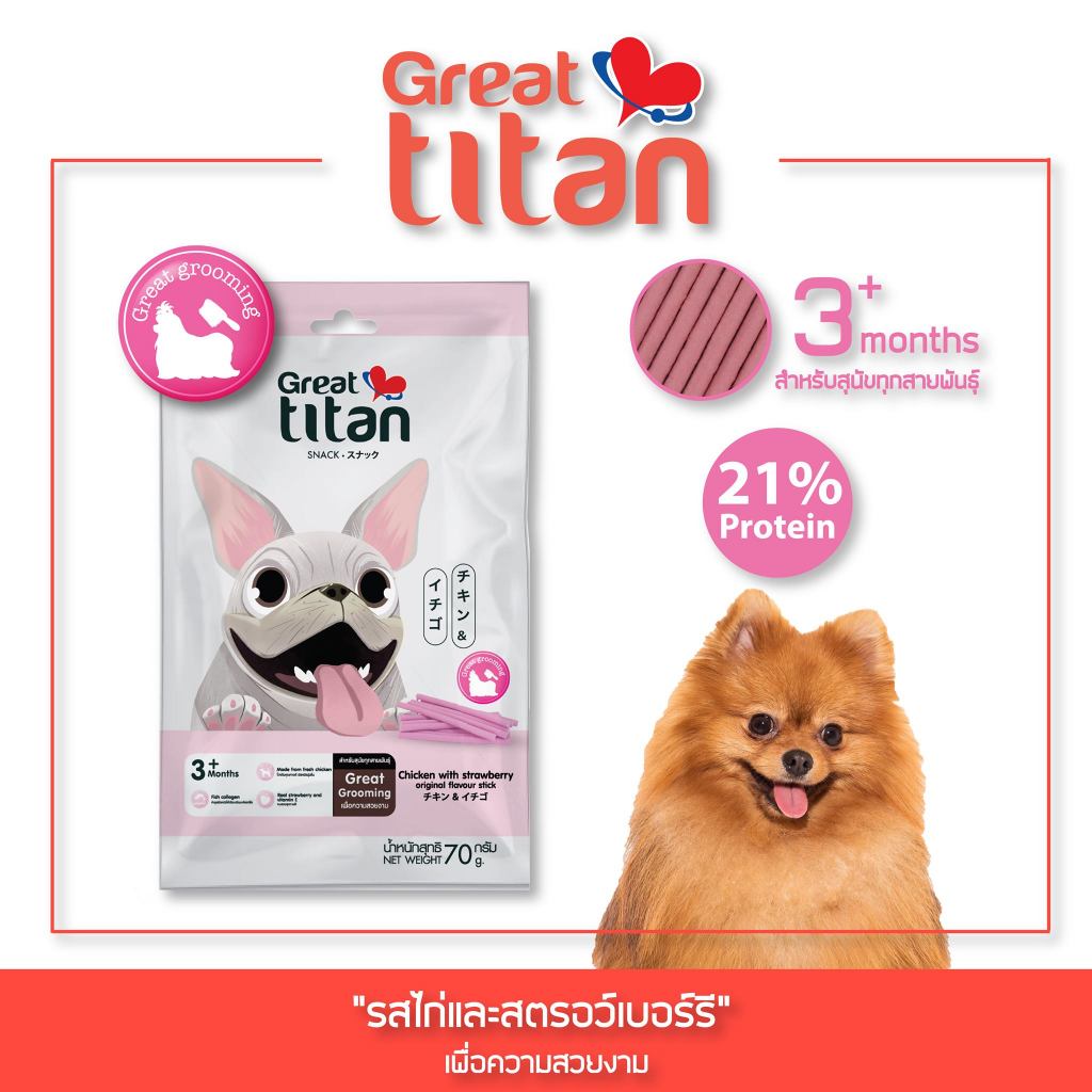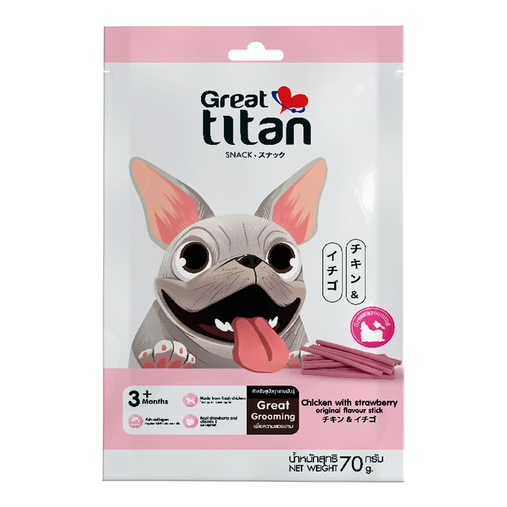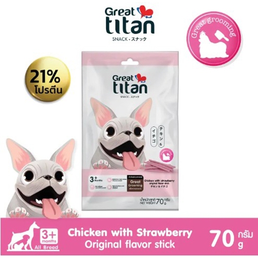 GREAT TITAN SNACK รส ไก่และสตอเบอรี่ ขนาด 70 g.X12 ซอง [ 1 กล่อง ] ขนมสุนัข สำหรับสุนัขทุกสายพันธุ์