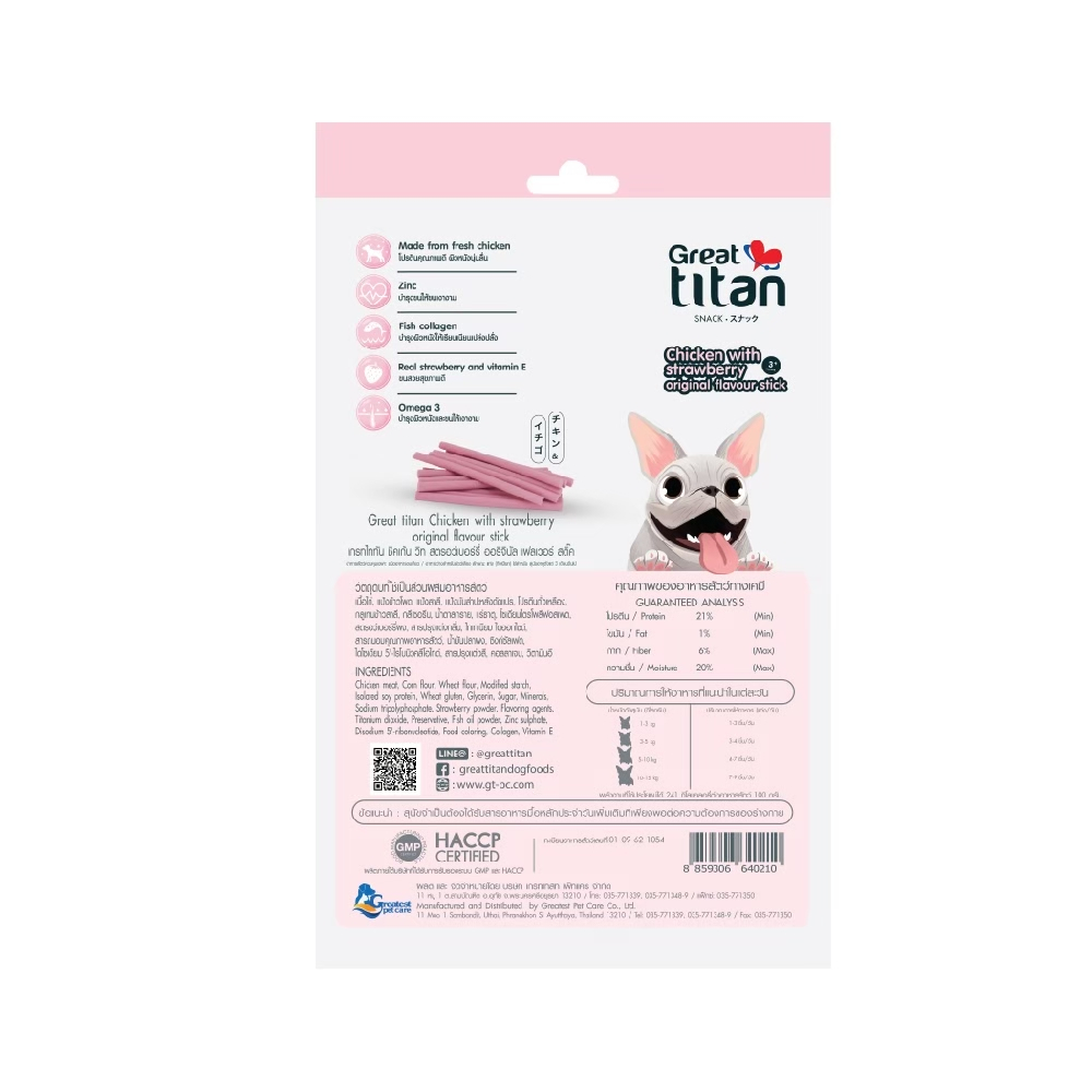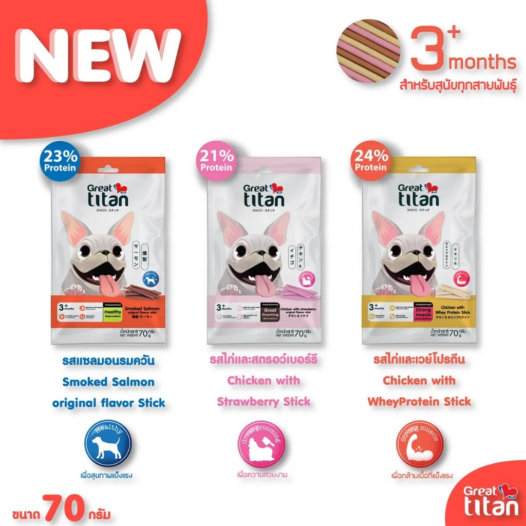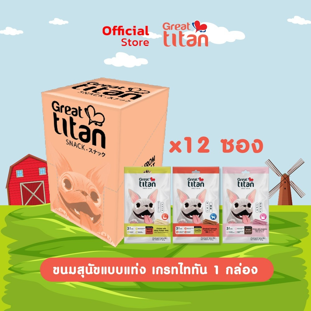 GREAT TITAN SNACK รส ไก่และสตอเบอรี่ ขนาด 70 g.X12 ซอง [ 1 กล่อง ] ขนมสุนัข สำหรับสุนัขทุกสายพันธุ์