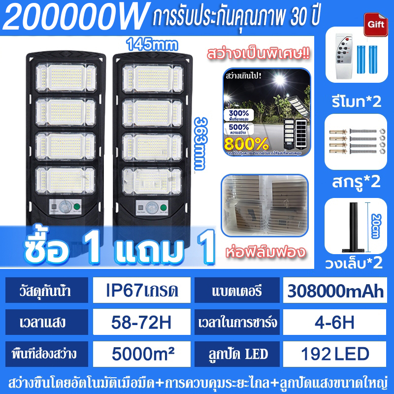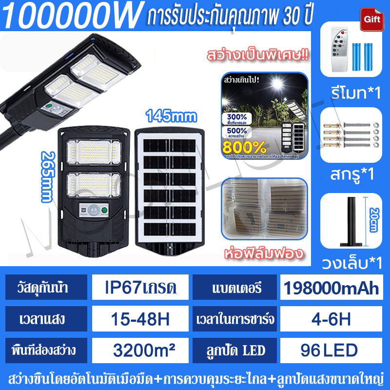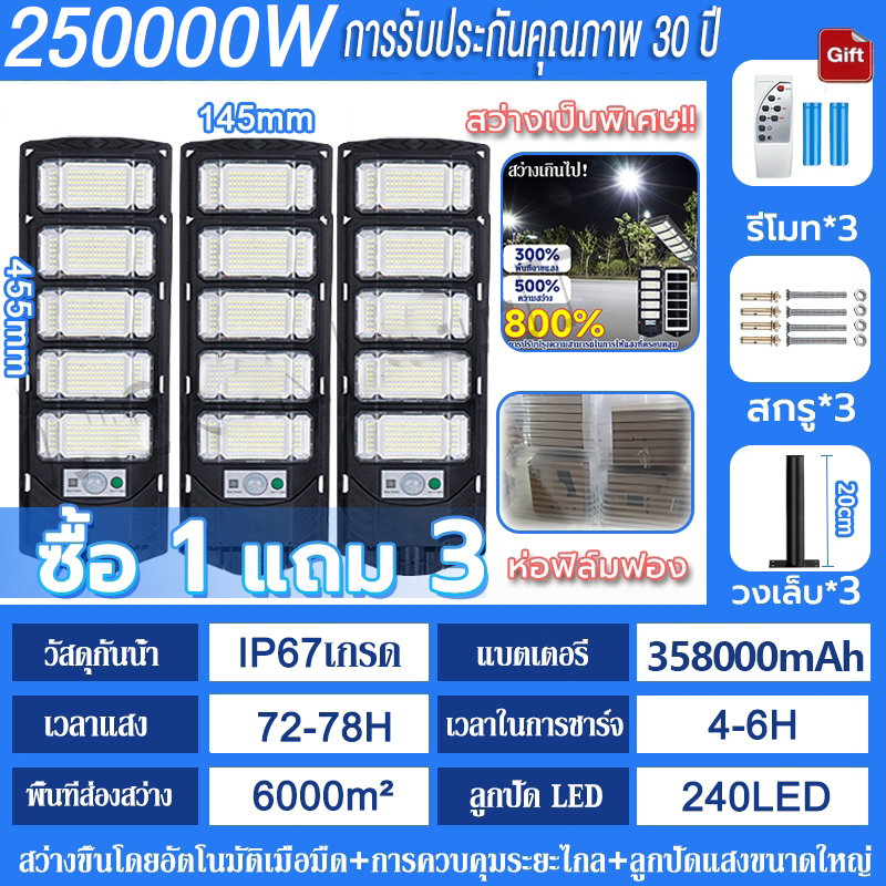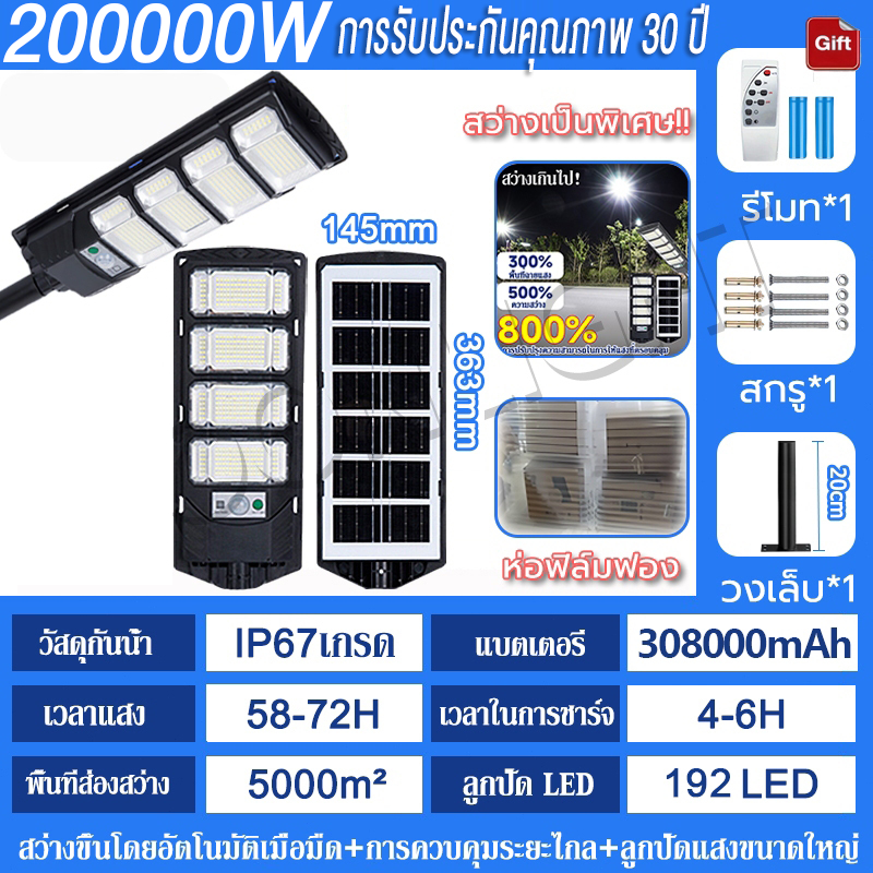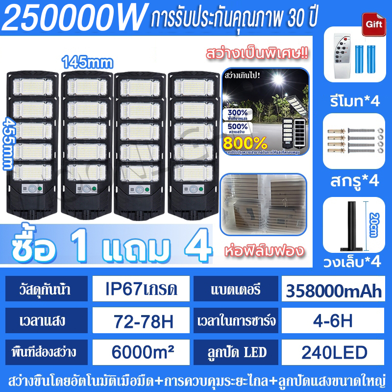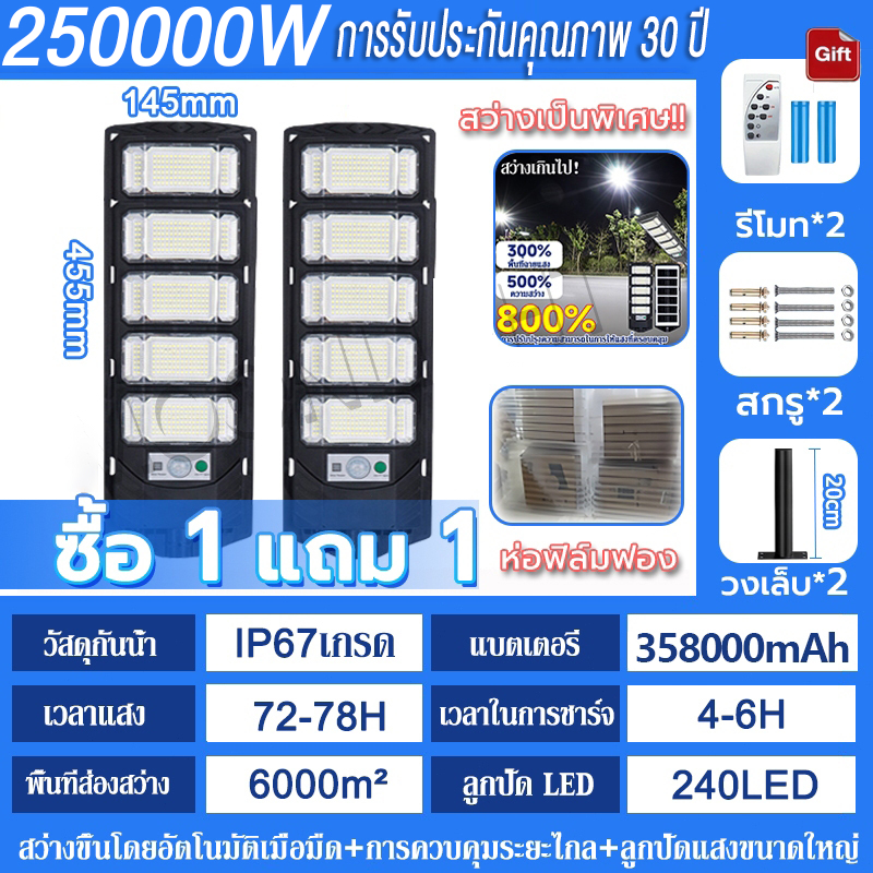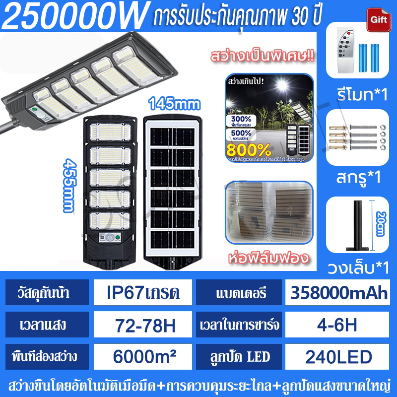 💡รับประกัน30ป💡 ไฟโซล่าเซลล์ 250000W ไฟถนนโซล่าเซลล์ IP69 กันน้ำและกันฟ้าผ่ Solar Light สว่างขึ้นโดยอัตโนมัตตอนกลางคืน