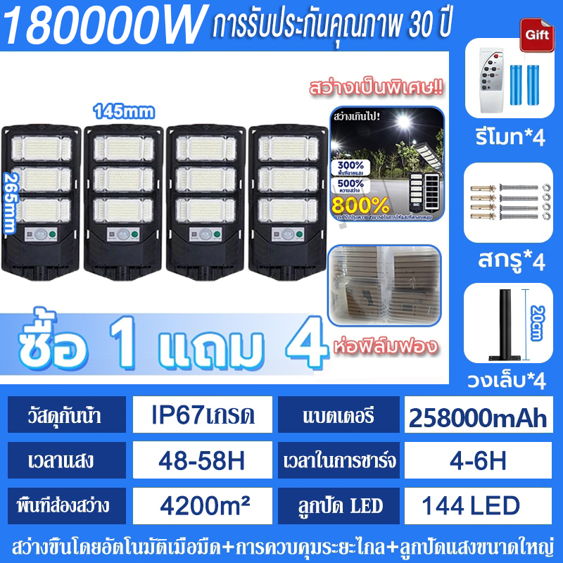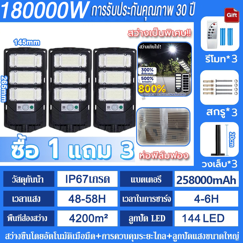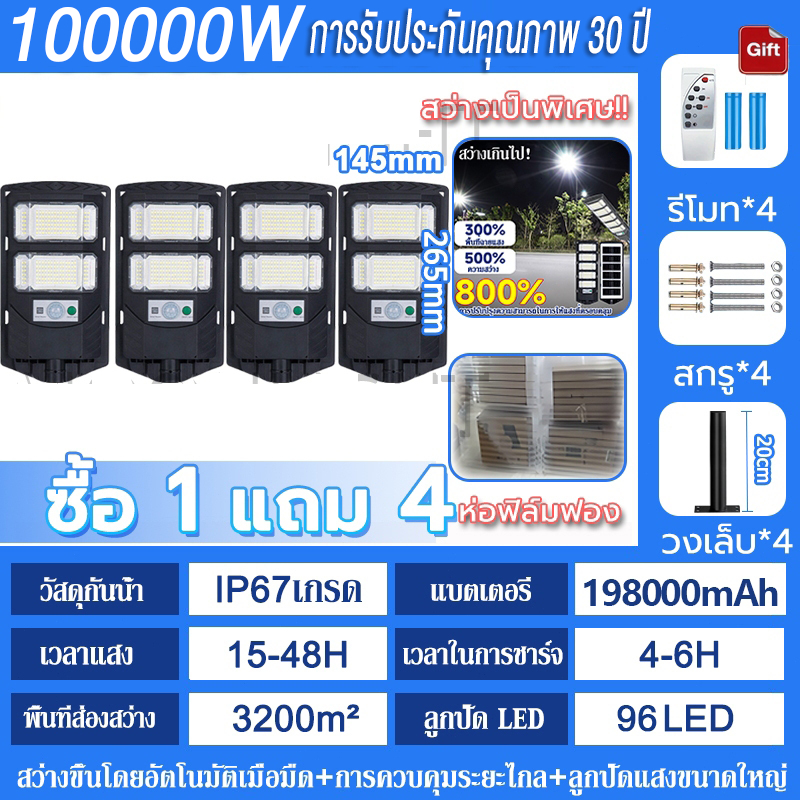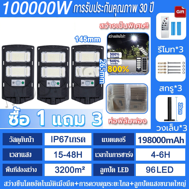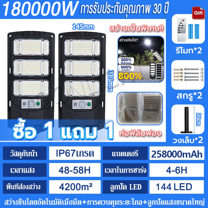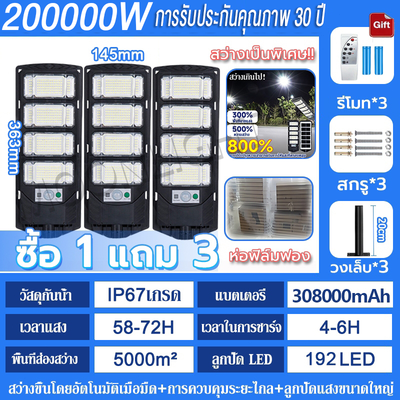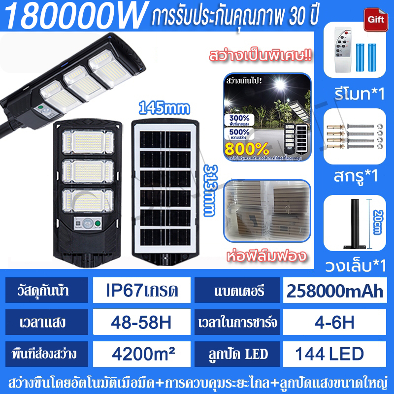 💡รับประกัน30ป💡 ไฟโซล่าเซลล์ 250000W ไฟถนนโซล่าเซลล์ IP69 กันน้ำและกันฟ้าผ่ Solar Light สว่างขึ้นโดยอัตโนมัตตอนกลางคืน