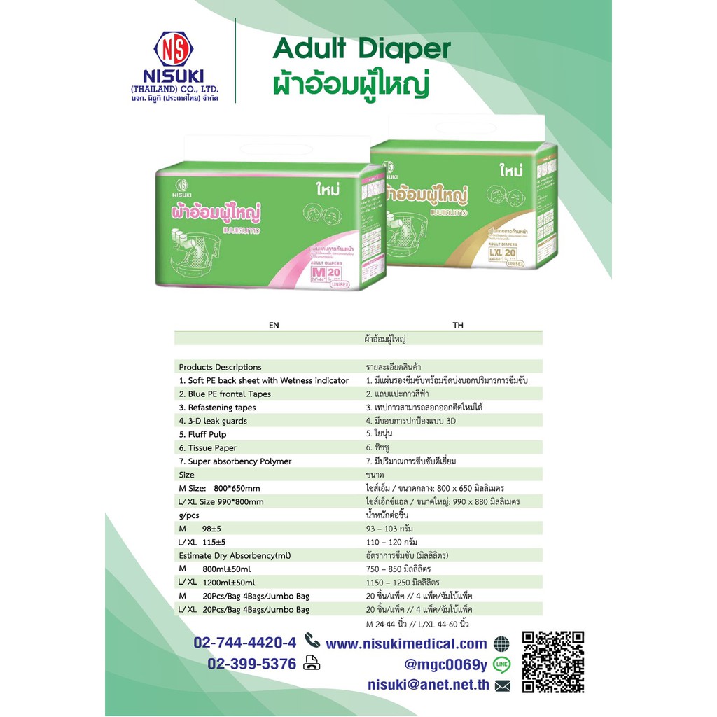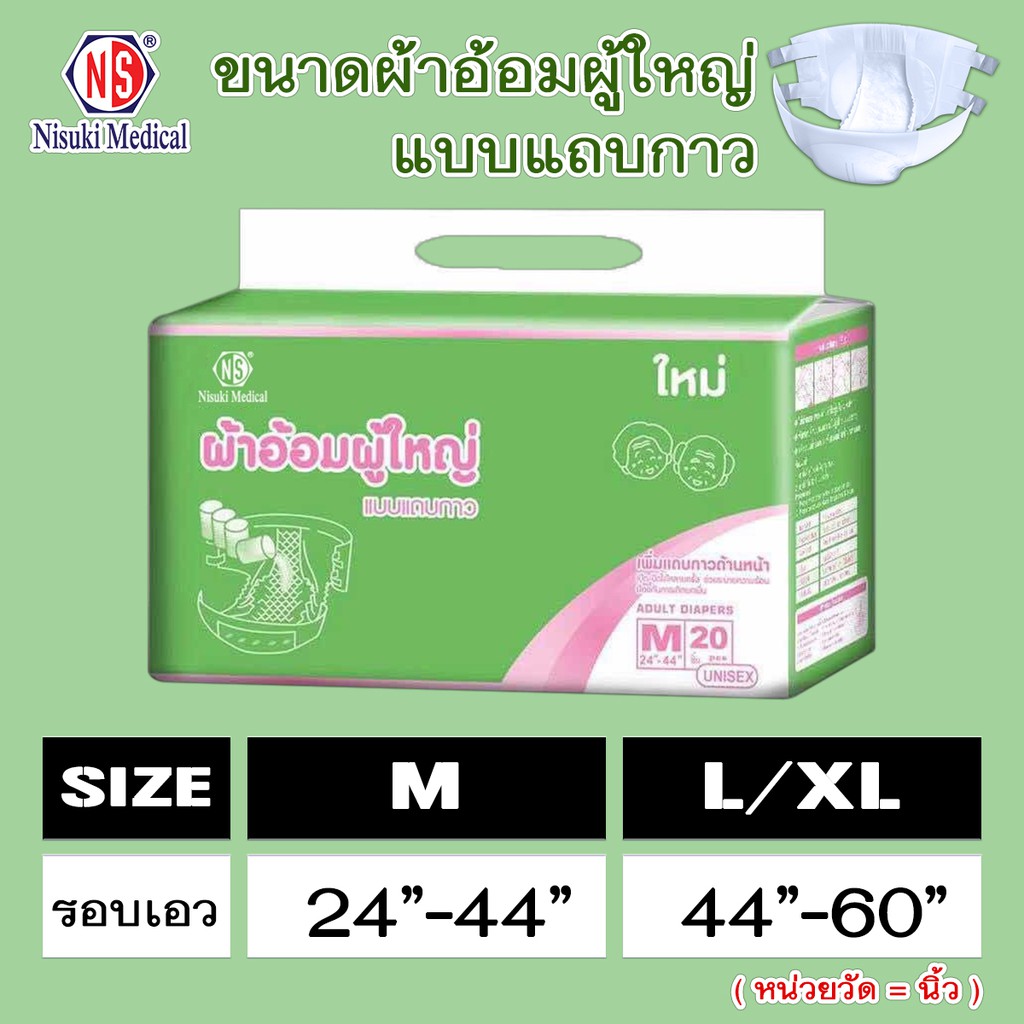 ผ้าอ้อมผู้ใหญ่แถบกาว NS ขนาด M 1 ลังบรรจุ 80 ชิ้น