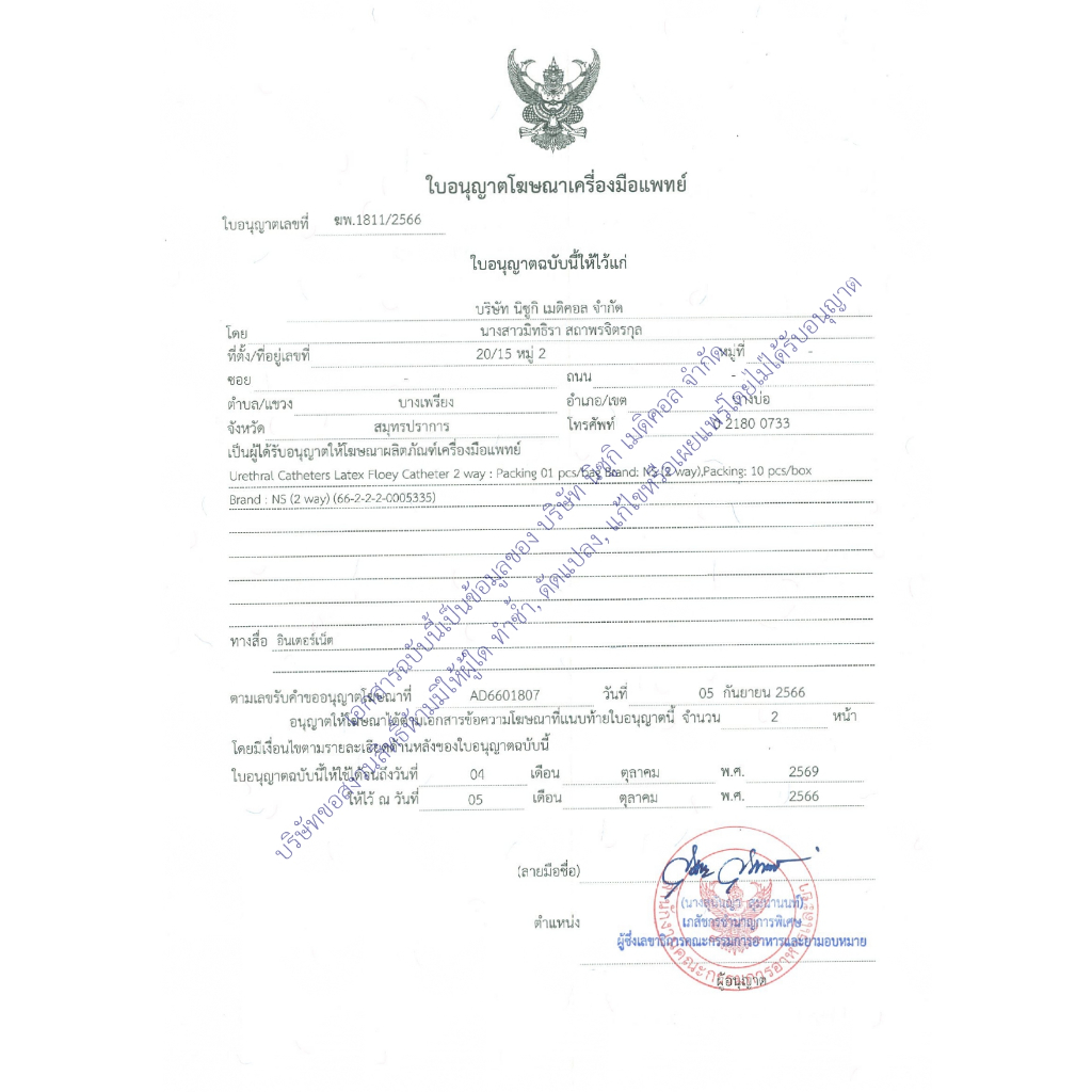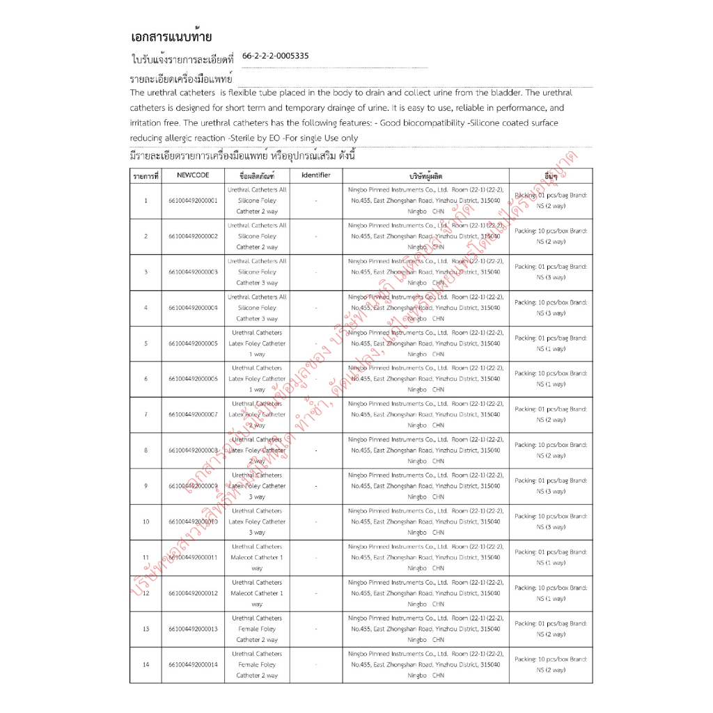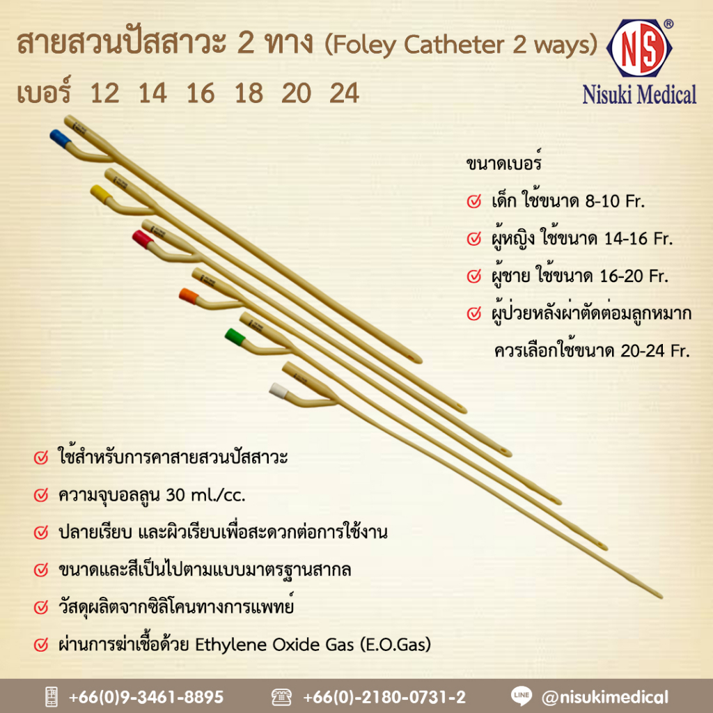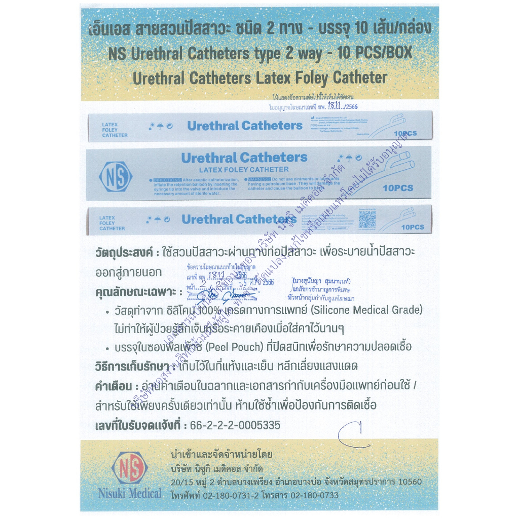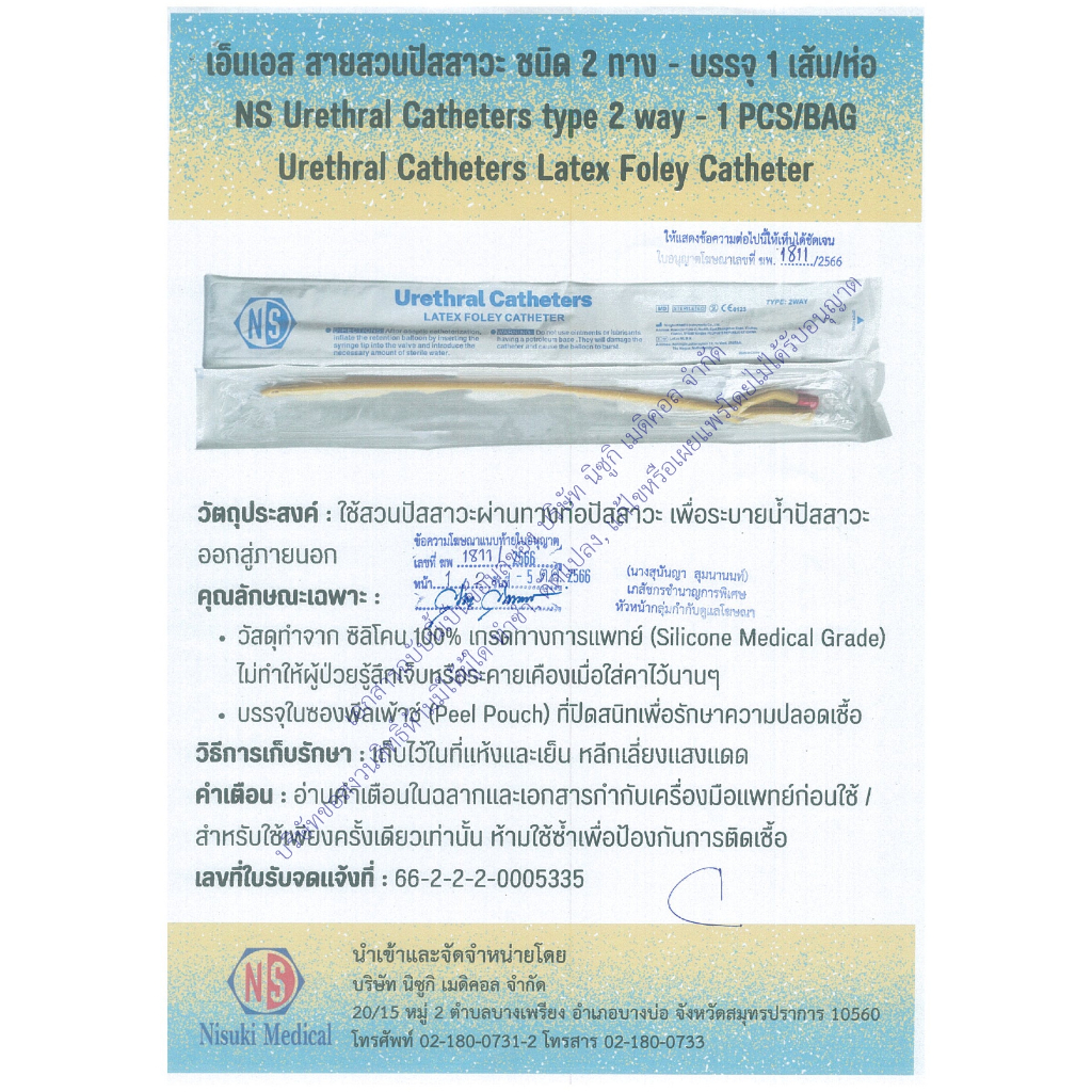 สายสวนปัสสาวะ 2 ทาง NS เบอร์ 16 จำนวน 1 ห่อ 1 เส้น เลข อย. 66-2-2-2-0005335