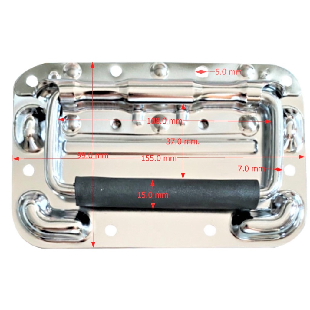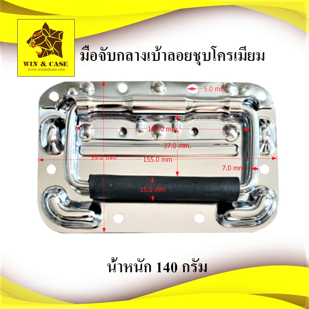 มือจับสปริงเบ้าลอย หน้ากว้าง 155 มม.มือจับไม่เจาะไม้ ชุบโครเมี่ยม อุปกรณ์แร็ค มือจับแร็ค ทำแร็ค ประกอบแร็ค