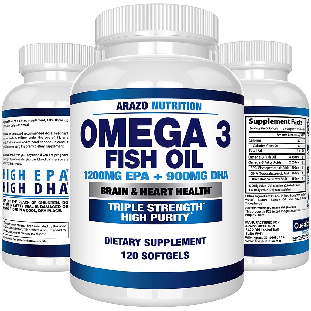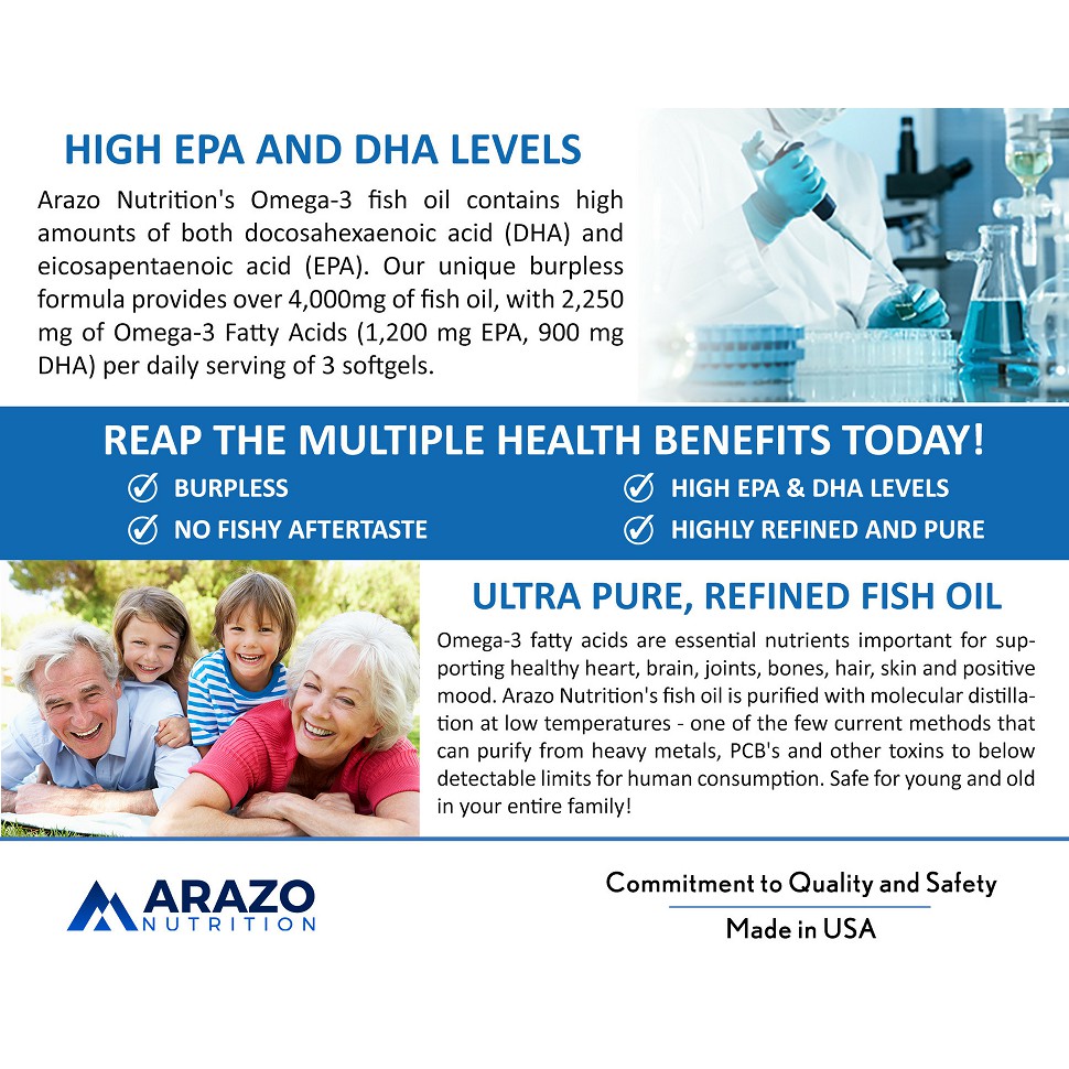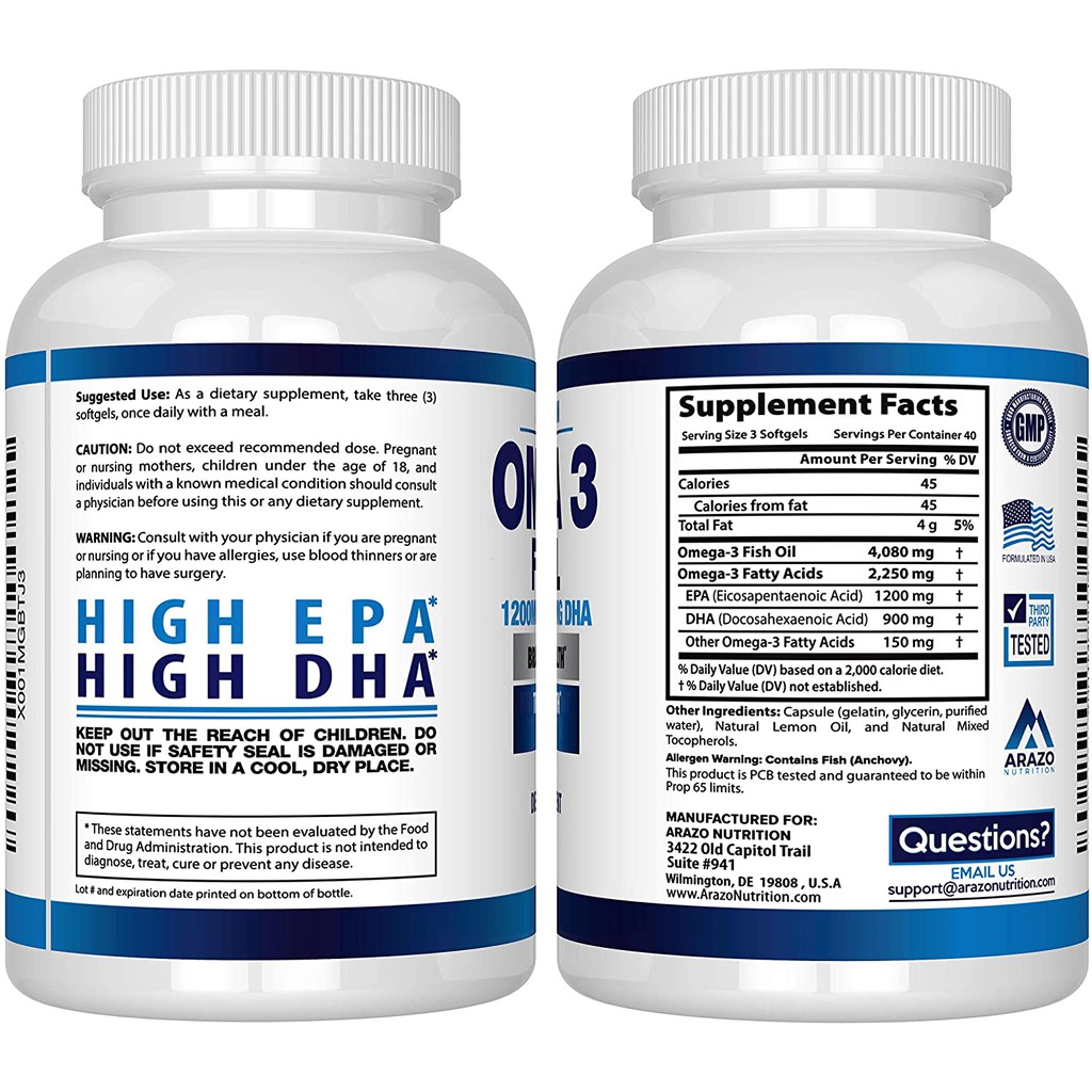 Arazo Nutrition น้ำมันปลา โอเมก้า 3 120 เม็ด /4,080mg Premium Omega 3 Fish Oil HIGH EPA 1200mg + DHA 900mg x3 Strength