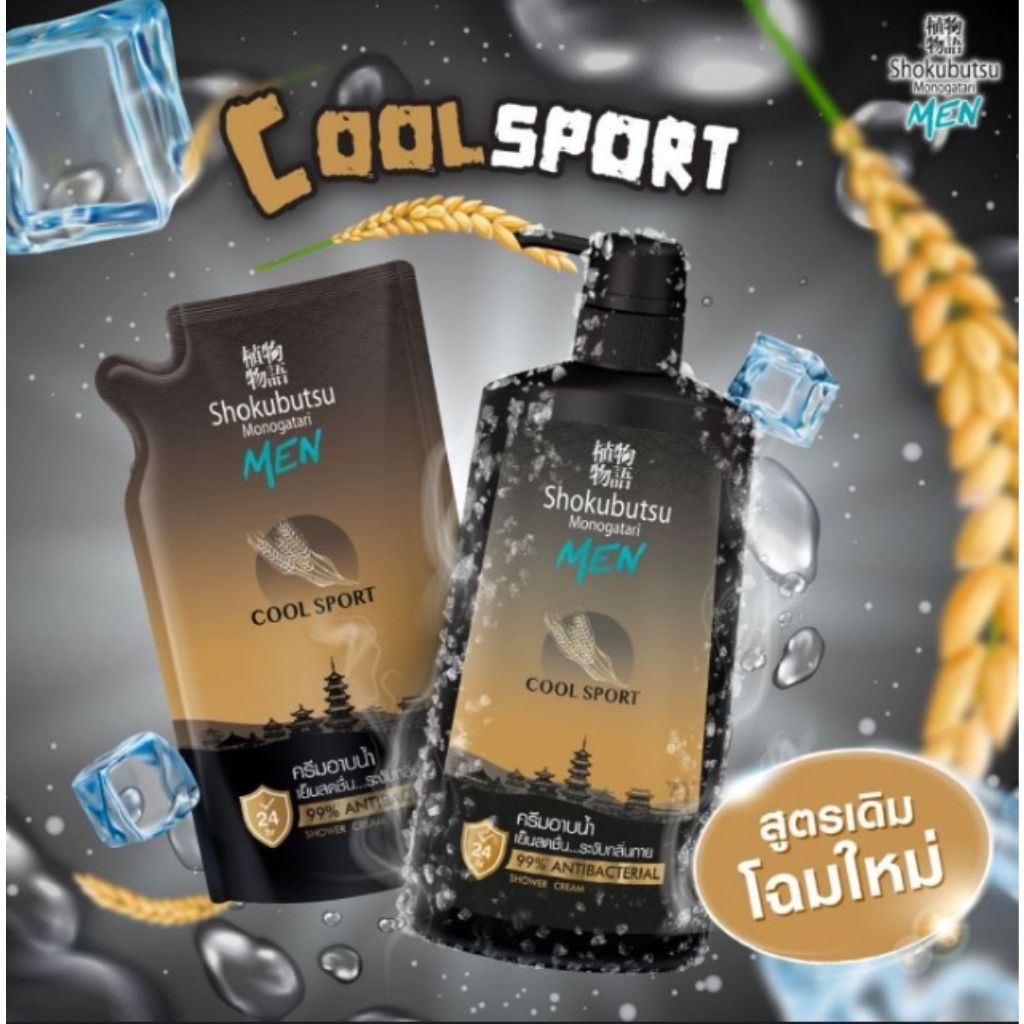 Shokubutsu For Men ครีมอาบน้ำสำหรับผู้ชาย สูตรเย็นสดชื่น ระงับกลิ่นกาย Cool Sport