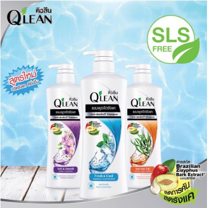 Q'lean คิวลีน แชมพู สูตรเย็น สดชื่น Fresh & Cool (สีฟ้า) 70-170 มล.