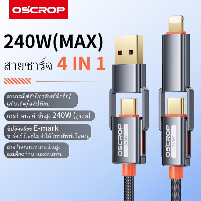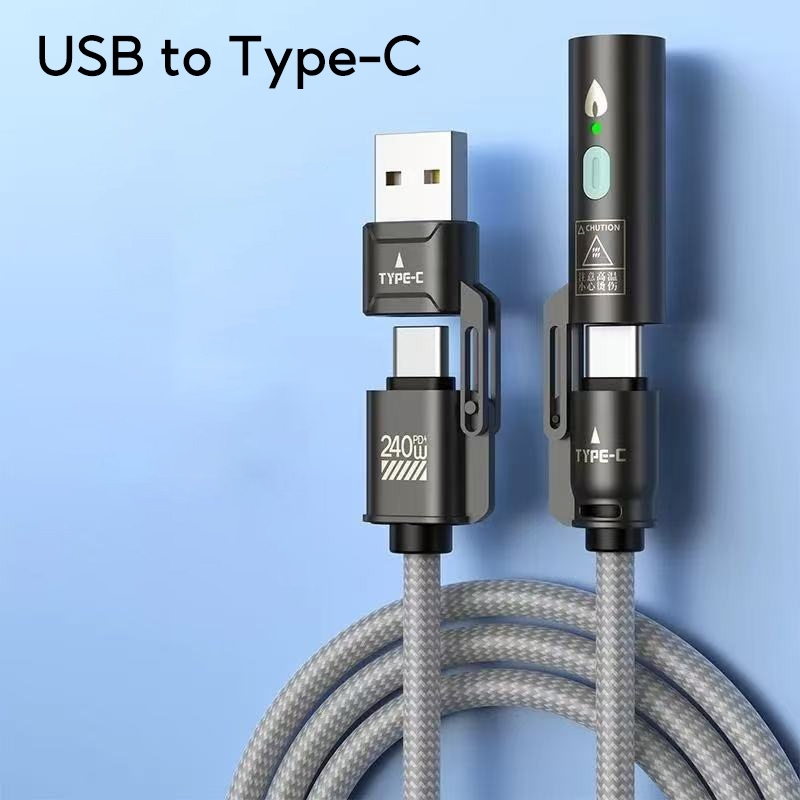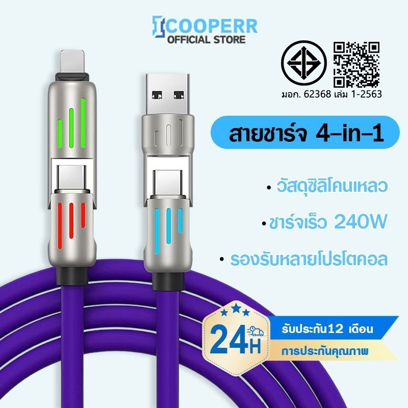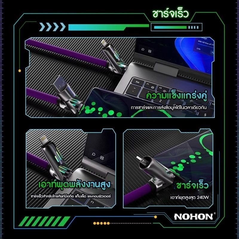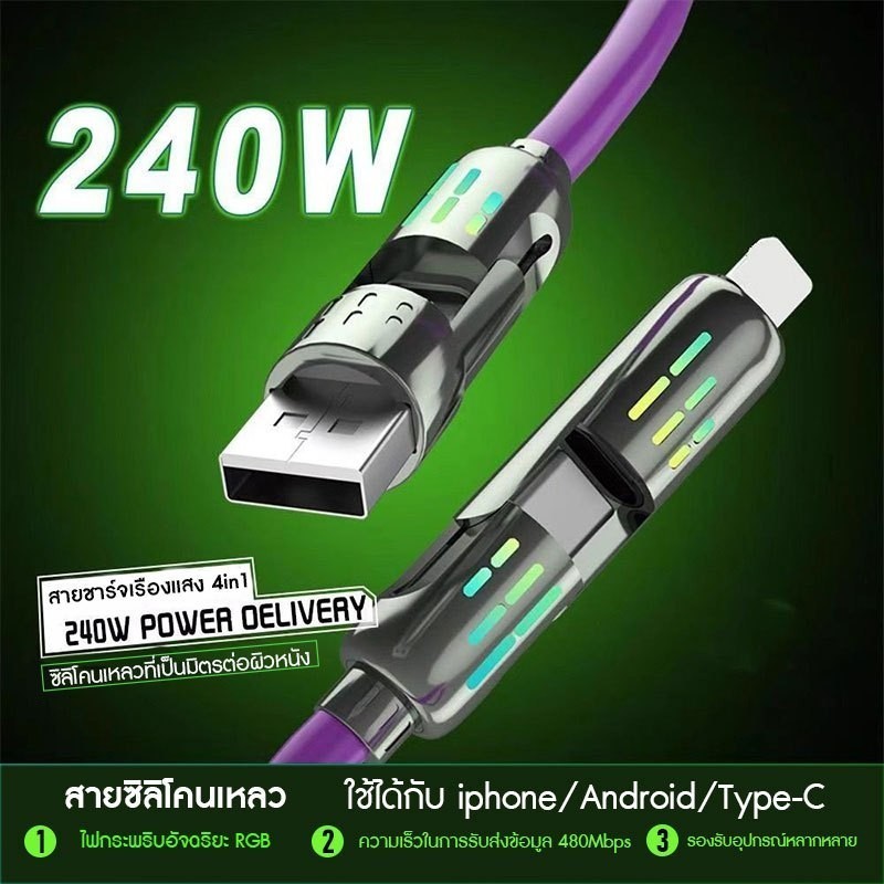 4in1 สายชาร์จเร็ว 240w RGB สายชาร์จไฟสีสันสดใสพลังแรง 240W การชาร์จในอนาคต