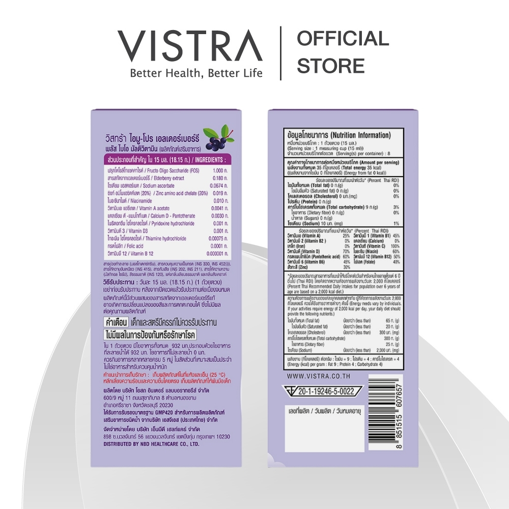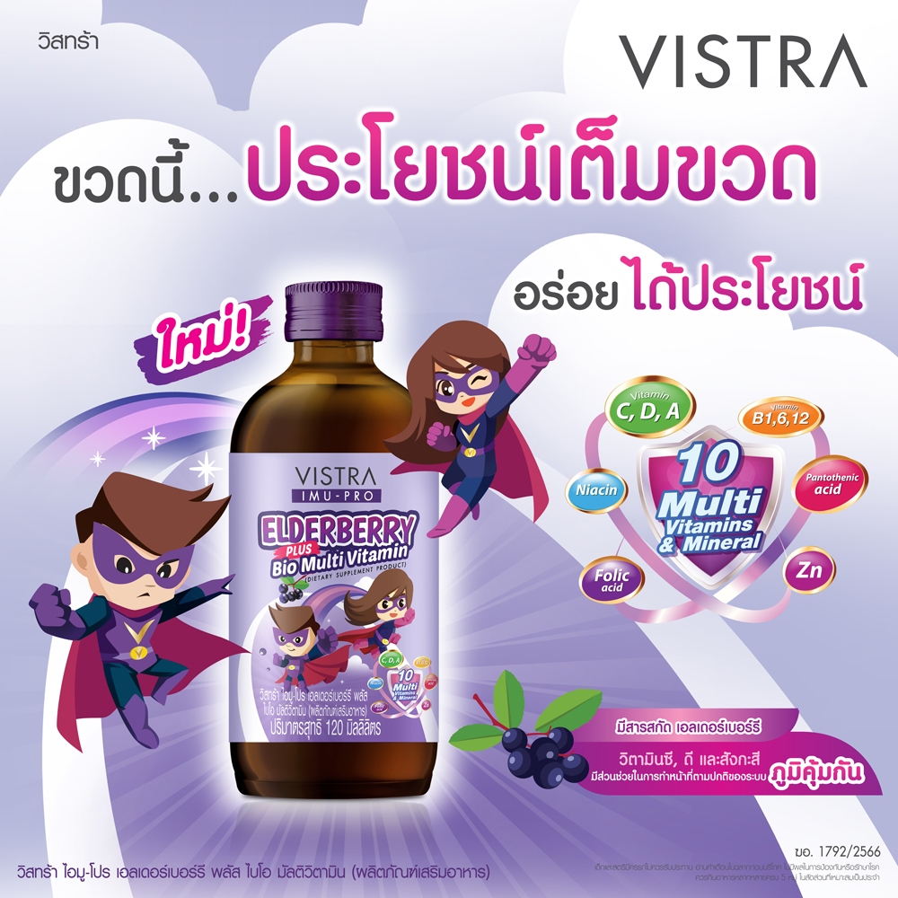 VISTRA IMU-PRO Elderberry plus BIO Multi Vitamin -ไอมู-โปร เอลเดอร์เบอร์รี 120 ML.