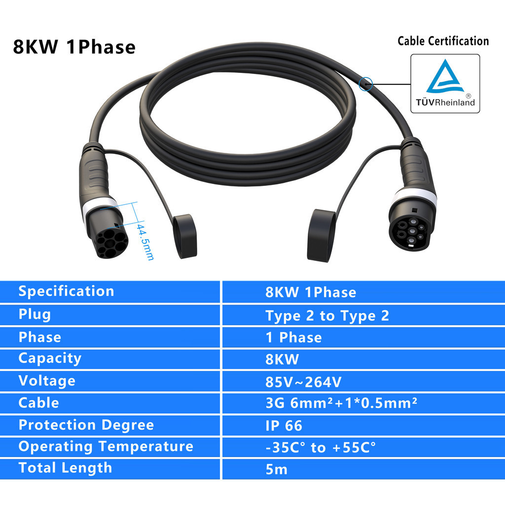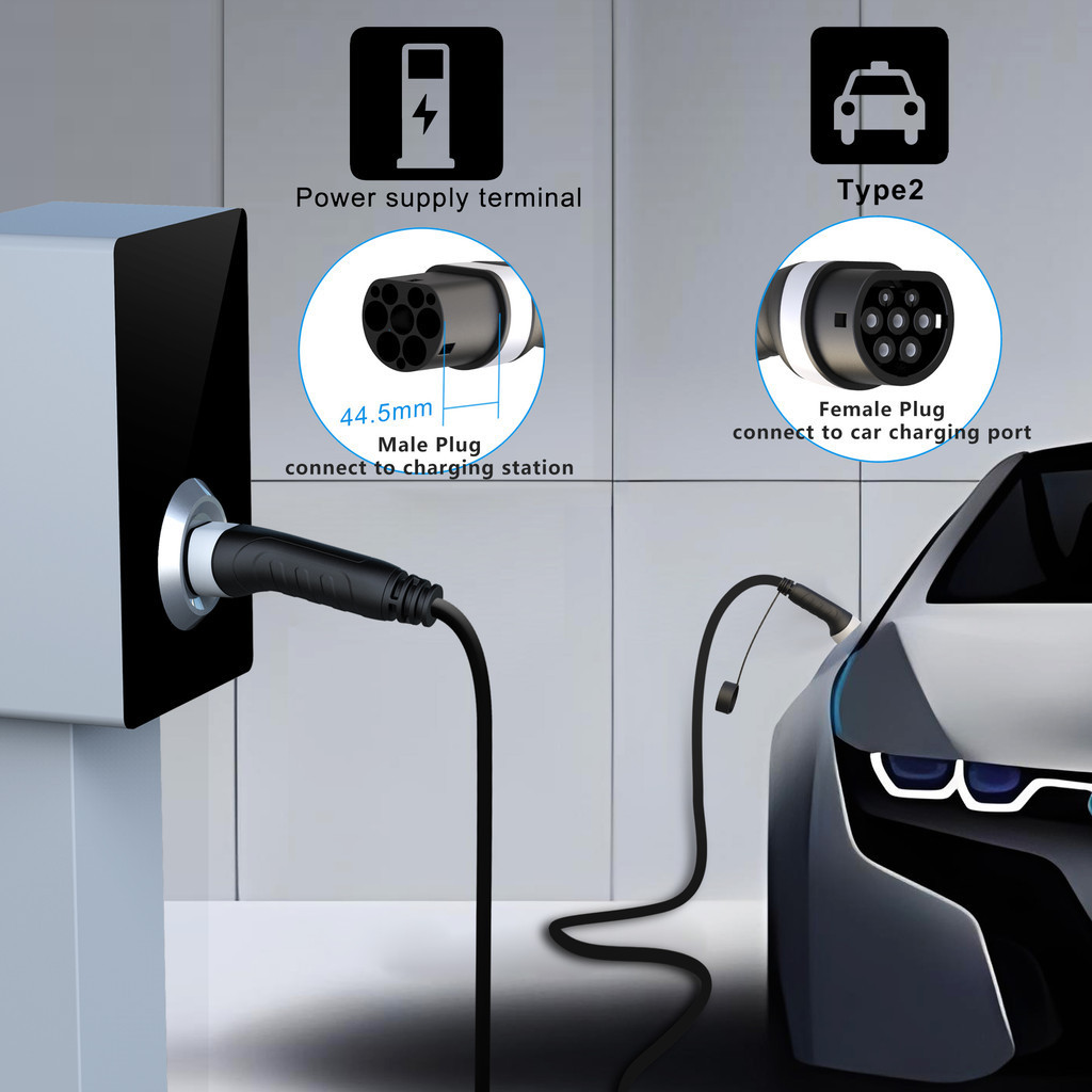 Evsow Car Charger Type2 ถึง Type2 สายชาร์จ 16A 11KW Type2 สถานีชาร์จ Type2 หญิงชาย EV สายชาร์จ 5 M