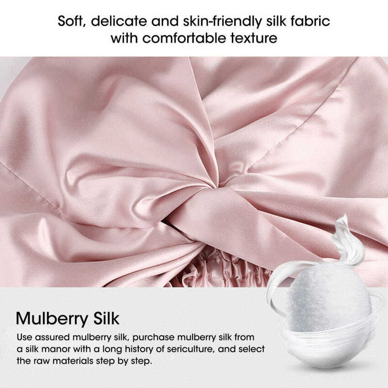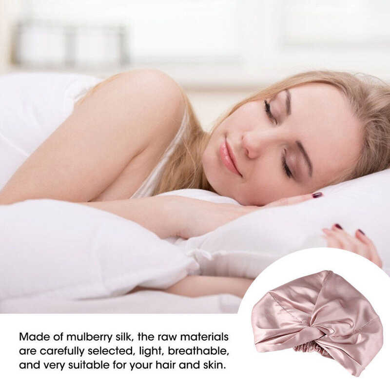 100% ผ้าไหมหมวกใส่นอน Night Silk Sleep ที่คลุมผมสำหรับผู้หญิง