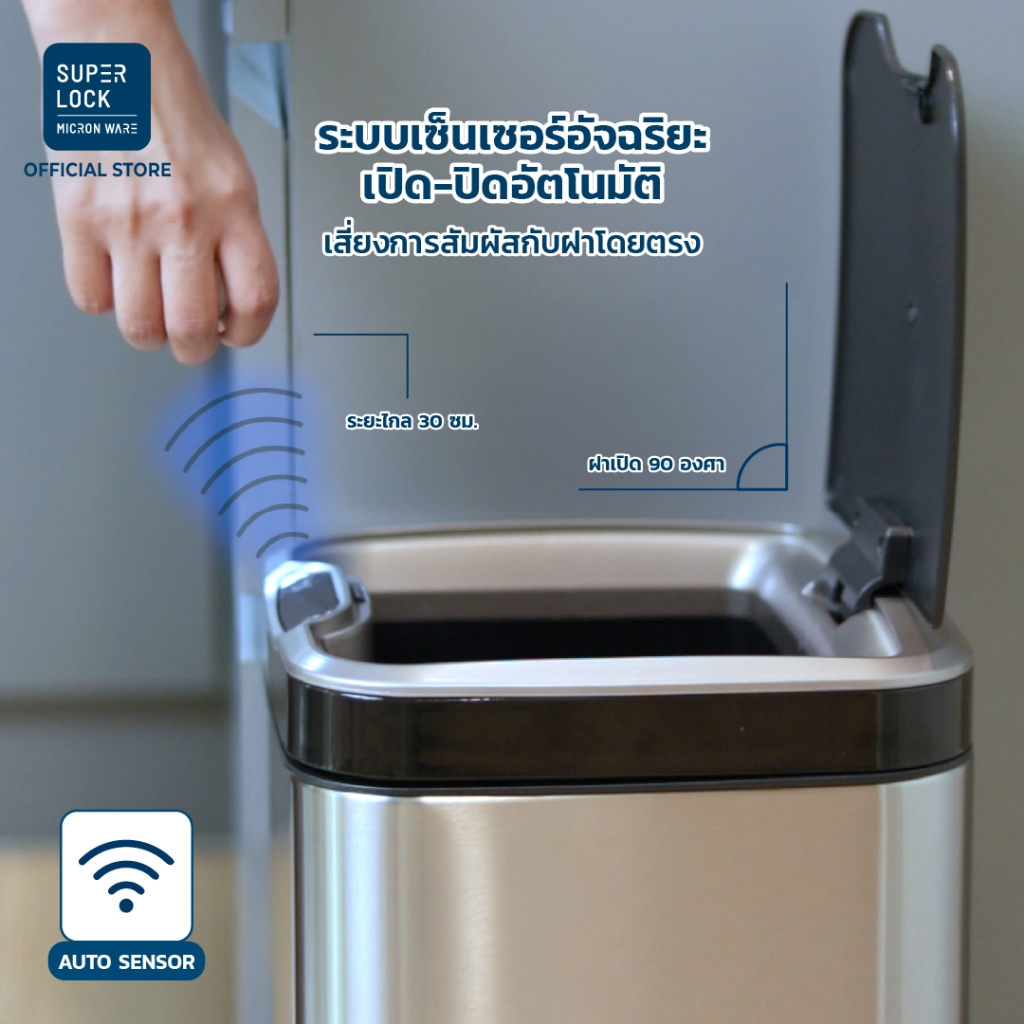 Super Lock ถังขยะสแตนเลสเซ็นเซอร์ 12-20 ลิตร ถังขยะอัจฉริยะ ถังด้านในถอดล้างได้ ระบบสัมผัส 5675 5676