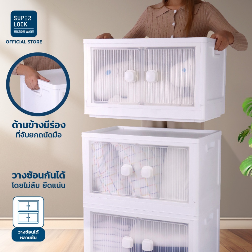 [เซตสุดคุ้ม] Super Lock กล่องเก็บของบานเปิด 3 กล่อง ซ้อนได้ 5688 + กล่องรองเท้า4 กล่อง 5657