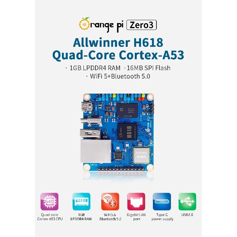 [In stock] Orange Pi Zero 3 1GB RAM DDR4 Allwinner H618 WiFi Bluetooth BLE Mini PC Orange Pi Zero3 Development Board Single Board Computer
