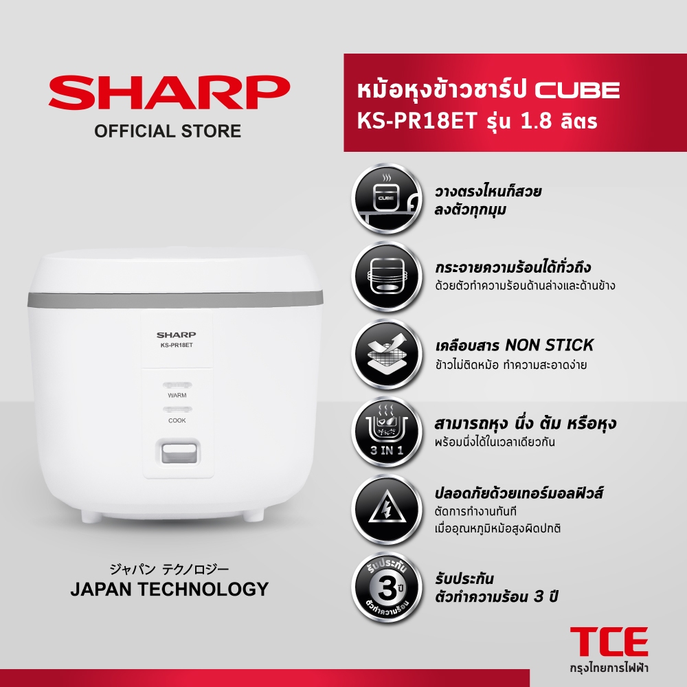 SHARP หม้อหุงข้าวชาร์ป CUBE KS-PR18ET รุ่น 1.8 ลิตร