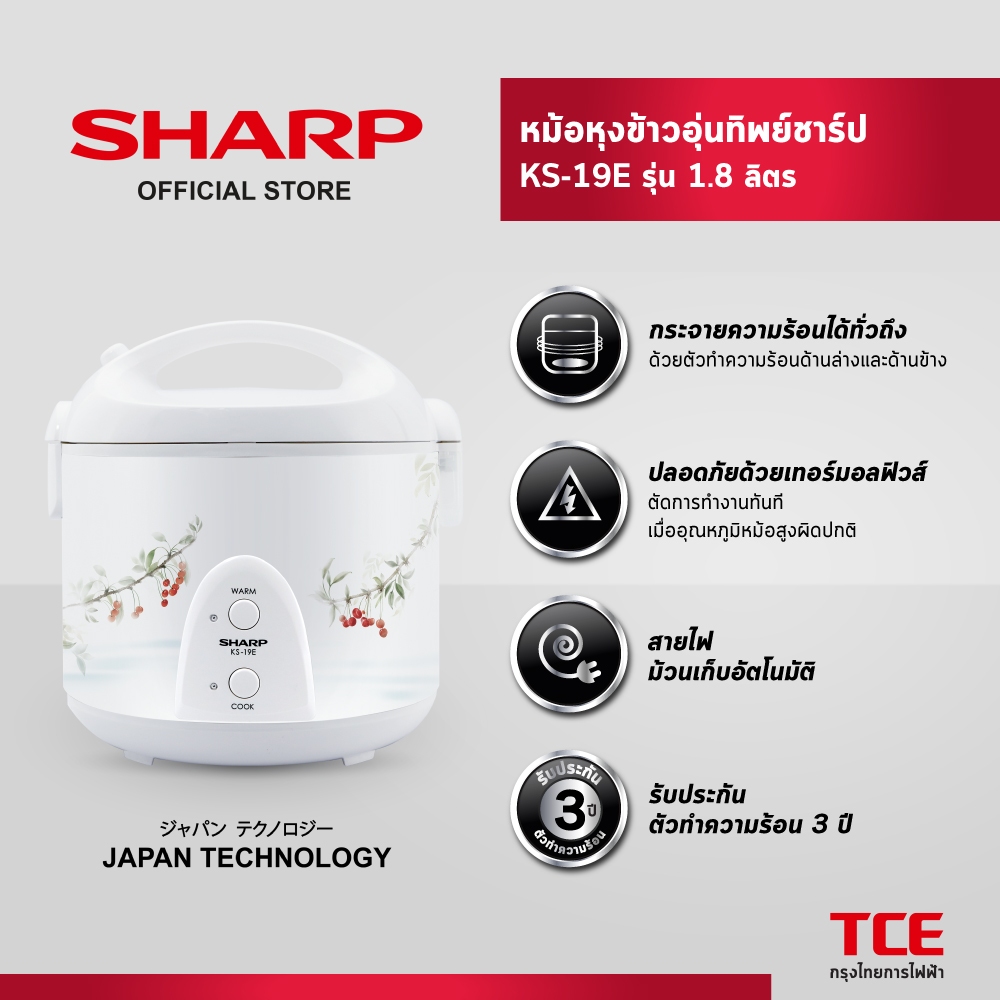 SHARP หม้อหุงข้าวอุ่นทิพย์ชาร์ป KS-19E รุ่น 1.8 ลิตร