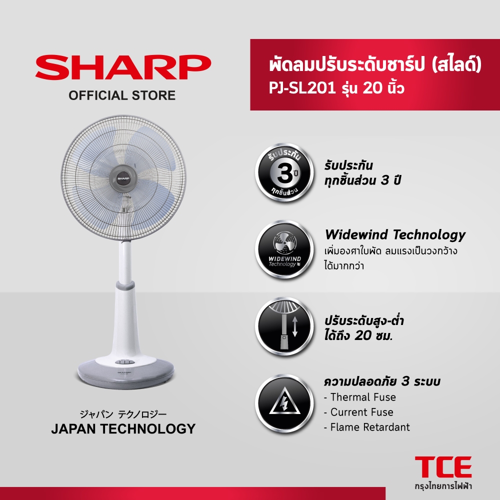 SHARP พัดลมปรับระดับชาร์ป (สไลด์) PJ-SL201 รุ่น 20 นิ้ว
