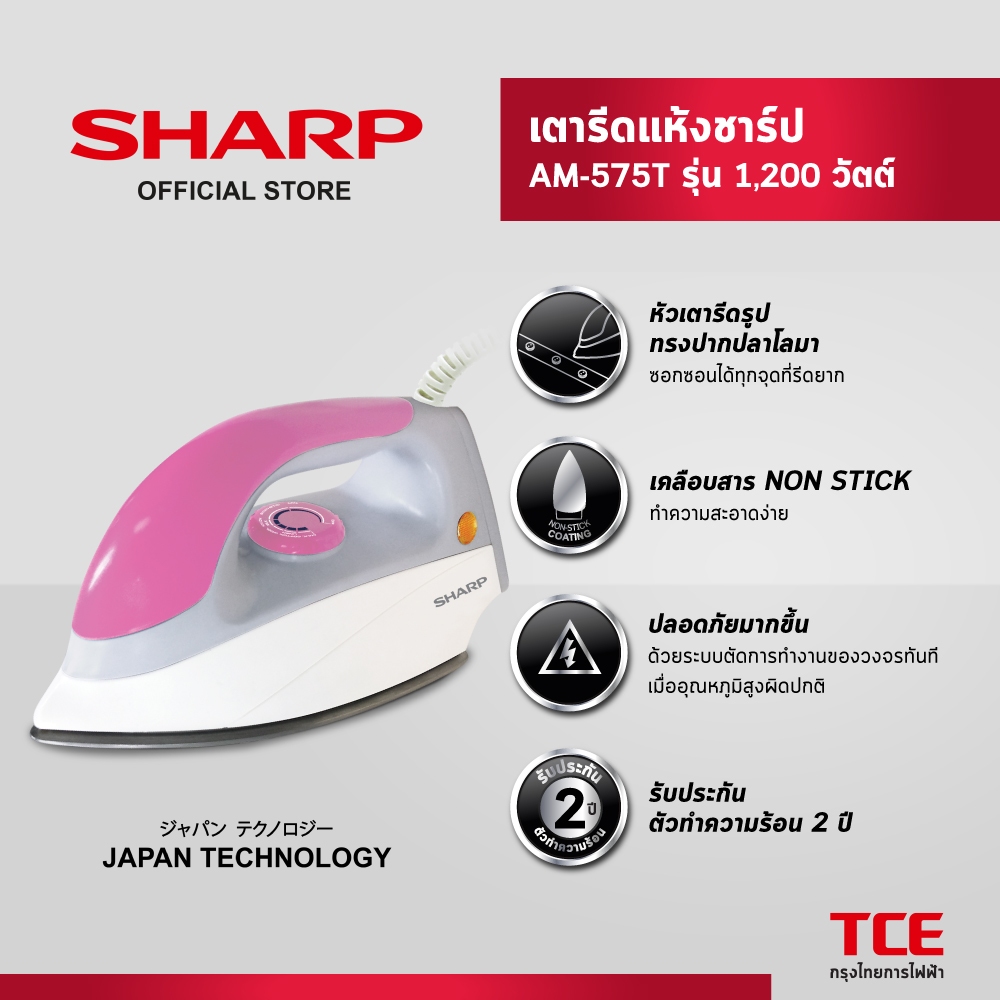 SHARP เตารีดแห้งชาร์ป AM-575T รุ่น 1,200 วัตต์